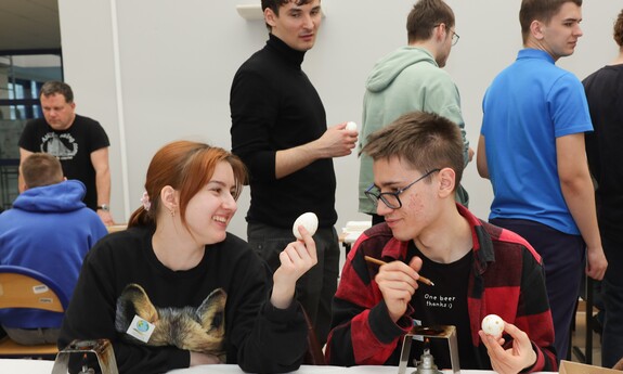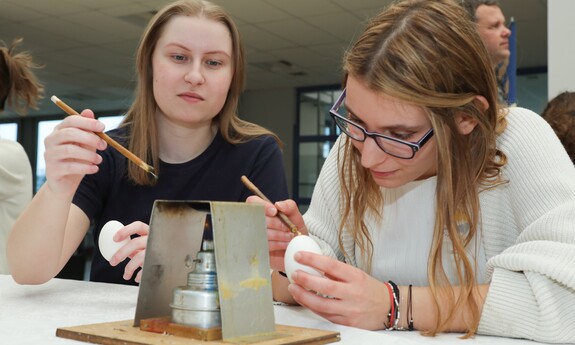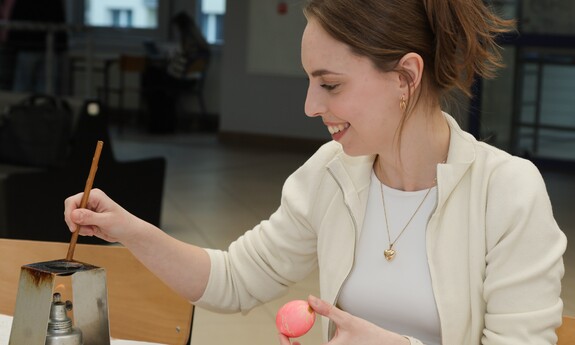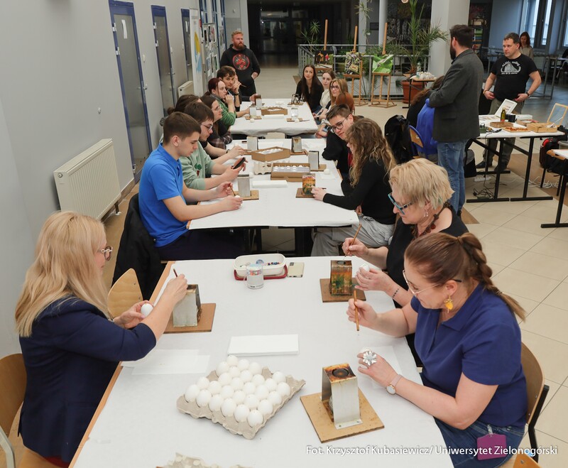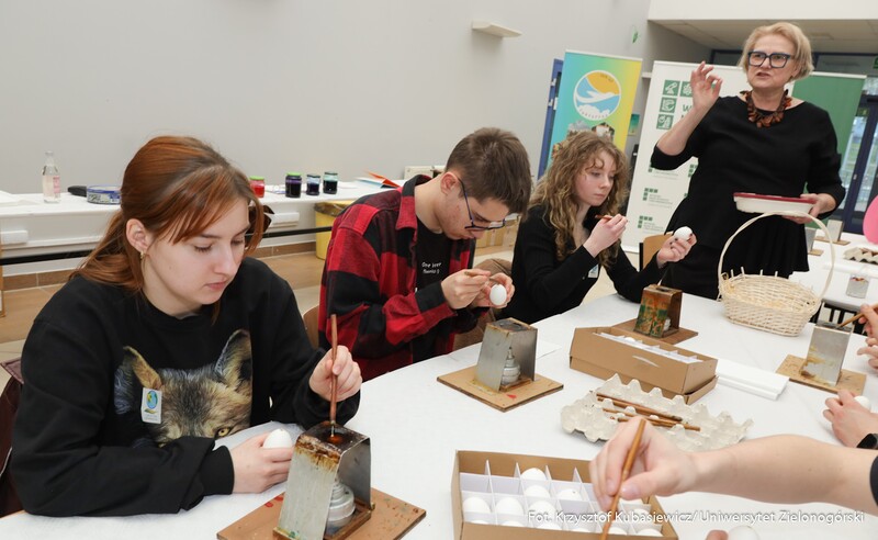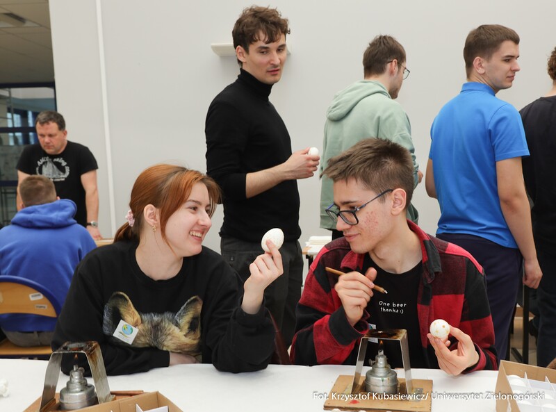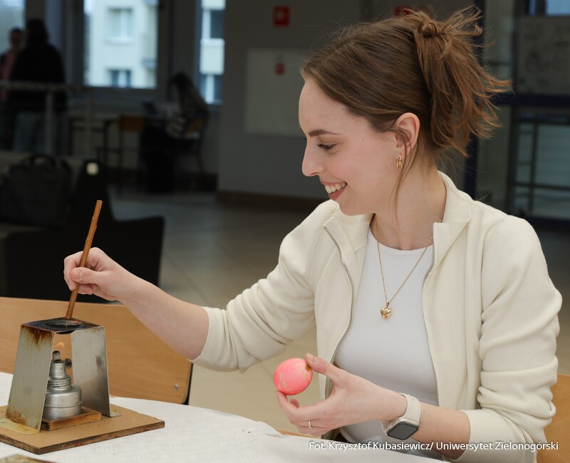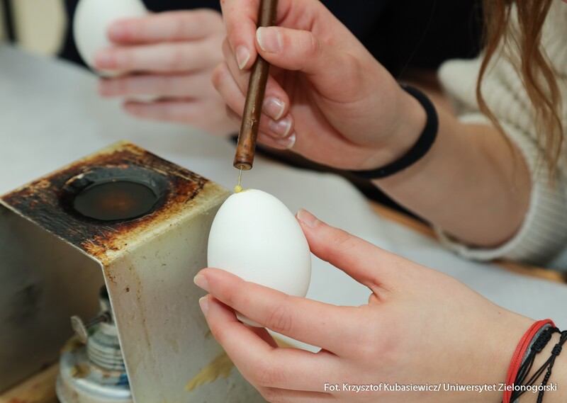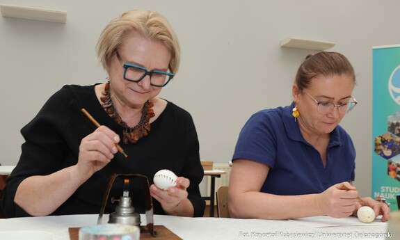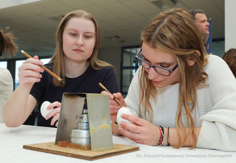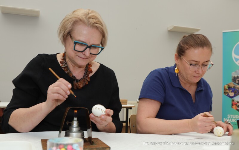 Oprócz części wykładowej dużym zainteresowaniem cieszyły się również warsztaty. Uczestnicy mogli spróbować swoich sił podczas malowania pisanek tradycyjną metodą batikową. – Zainteresowanie tymi warsztatami jest znaczne. Wszyscy próbujemy stworzyć piękne i kolorowe pisanki, które znamy z targów kultury ludowej. Choć troszkę do nich podobne. Nasz Dzień Jaja to swego rodzaju przeciwwaga dla wydarzeń, które odbywają się w okresie przed Bożym Narodzeniem. Spotykamy się już po czwarty, wydarzenie przetrwało i spotkało się z dużym zainteresowaniem. Oprócz jaja poznajemy dziś także życie ukryte w bursztynie - mówi dr Iwona Miedzińska z Instytutu Sportu, Turystyki i Żywienia UZ.