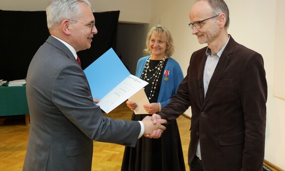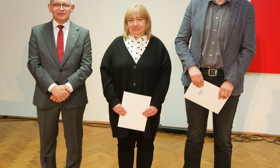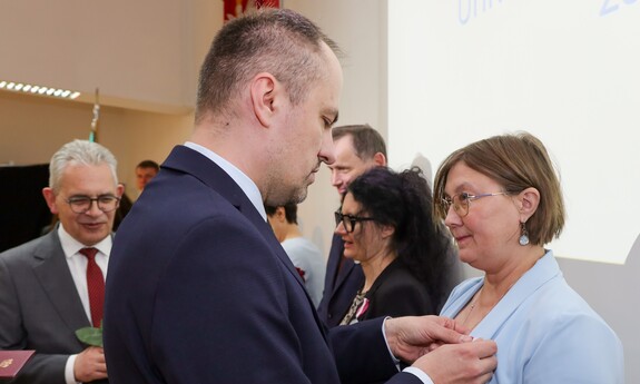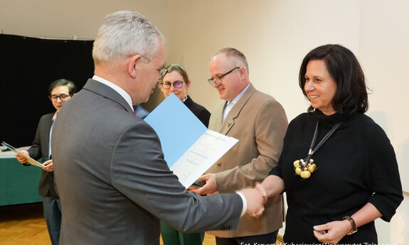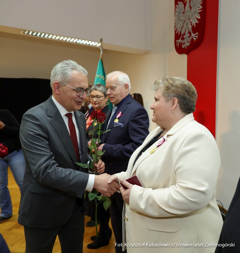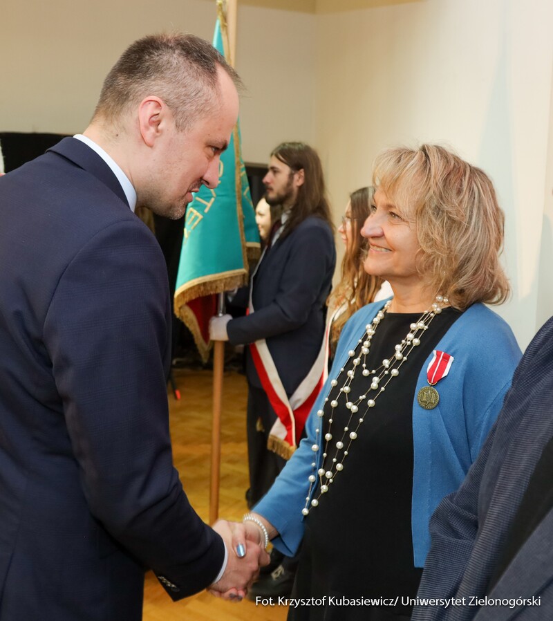 Medalem Złotym za Długoletnią Służbę uhonorowanych zostało czternastu pracowników Uniwersytetu Zielonogórskiego, natomiast Medal Srebrny za Długoletnią Służbę przyznano siedemnaściorgu pracownikom naszej uczelni. Nie zabrakło także Medali Brązowych za Długoletnią Służbę, które otrzymało czterech pracowników UZ. - Takie odznaczenia otrzymują osoby, które zrobiły coś ważnego. Ten medal pokazuje, że zostałam zauważona. Ktoś mnie docenił i to jest najważniejsze. Jestem profesorem tytularnym, więc osiągnęłam wszystko, co można w działalności akademickiej. Otworzyłam trzy nowe kierunki na ówczesnym Wydziale Humanistycznym, które istnieją do dziś. Przyjęłam też kilkunastu naszych absolwentów, którzy zrobili doktoraty. Nasz Instytut Filozofii jest rozpoznawalny, nie jesteśmy białą plamą na mapie uniwersytetów - mówi odznaczona Medalem Złotym za Długoletnią Służbę prof. dr hab. Lilianna Kiejzik z Instytutu Filozofii UZ. - Każde wyróżnienie jest zawsze miłe dla pracownika. Srebrny Medal za Długoletnią Służbę to dla mnie przede wszystkim wyraz uznania za lata pracy i zaangażowania w działalność na uniwersytecie. Traktuję to wyróżnienie jako zaszczyt, ale także jako motywację do dalszej pracy, dzielenia się wiedzą i wspierania kolejnych pokoleń studentów - dodaje odznaczony Medalem Srebrnym za Długoletnią Służbę dr Paweł Szudra z Instytutu Nauk o Zarządzaniu i Jakości UZ.