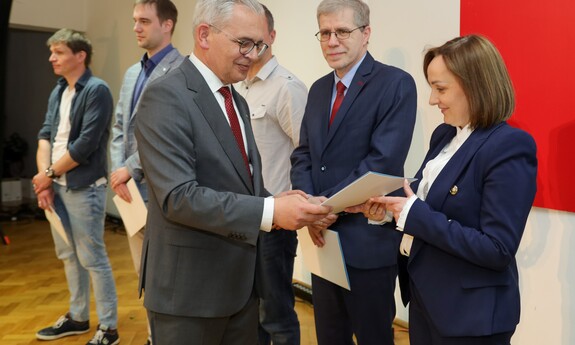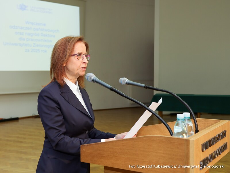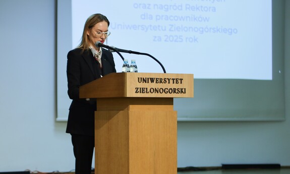 Środową uroczystość poprowadziła prof. dr hab. inż. Justyna Patalas-Maliszewska, która nie kryła uznania dla uhonorowanych oraz nagrodzonych pracowników Uniwersytetu Zielonogórskiego. - To jest ogromny wysiłek na rzecz działalności dydaktycznej ze strony osób nagrodzonych. Dzisiaj przyznane zostały między innymi nagrody za uzyskanie tytułu profesora, stopnia doktora habilitowanego i doktora – są to awanse, do których wszyscy dążymy. Szczególne gratulacje i serdeczności przesyłam do tych osób, które przyczyniły się do rozwoju jakości działalności naukowej Uniwersytetu Zielonogórskiego. Doskonałość dydaktyczną realizujemy również dzięki Państwa wielkiemu trudowi i wysiłkowi - dziękowała Prorektor ds. nauki i współpracy z zagranicą UZ.