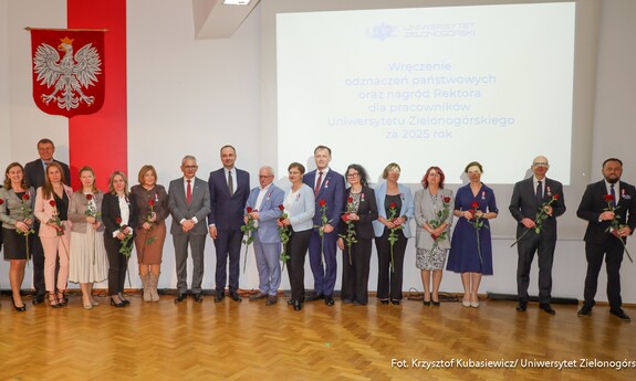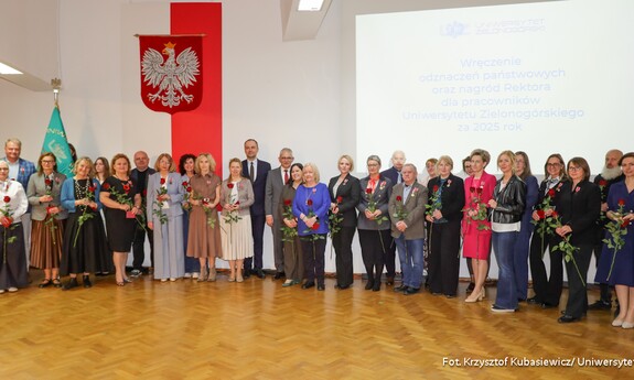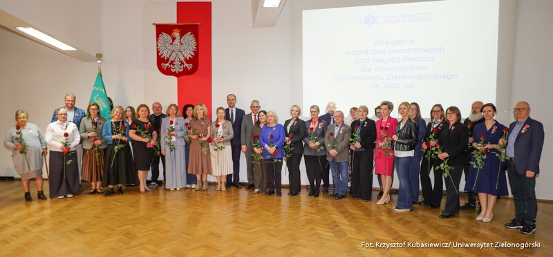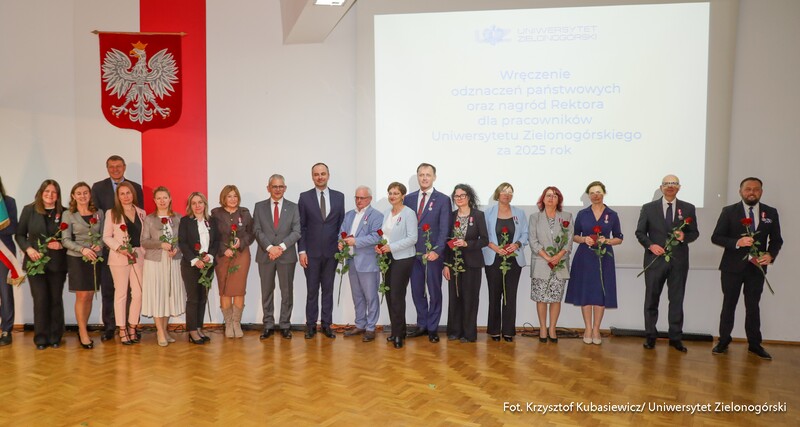 To była wyjątkowa uroczystość. Ponad sześćdziesięciu pracowników Uniwersytetu Zielonogórskiego w środę 22 kwietnia br. otrzymało odznaczenia państwowe oraz resortowe. Ponadto wręczone zostały także nagrody Rektora UZ. W sumie za rok 2025 docenionych zostało ponad stu siedemdziesięciu pracowników naszej uczelni - zarówno naukowych, jak i administracyjnych.