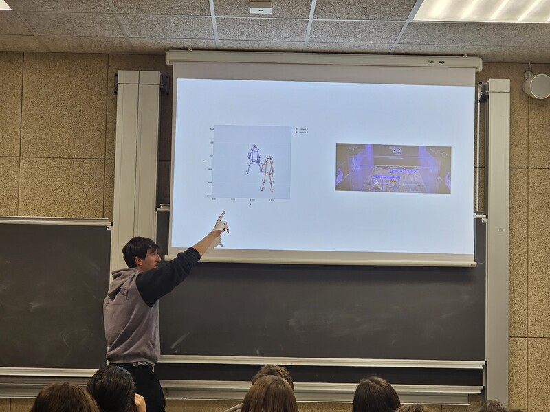 Podczas spotkania studenci UZ przedstawili działalność KNMS oraz założenia i cele projektu LiDARLab – system pozyskiwania i analizy danych 3D do zastosowań inżynierskich i komercyjnych. Projekt ten, realizowany na Uniwersytecie Zielonogórskim, obejmuje rozwój metod skanowania przestrzennego, analizy danych 3D oraz opracowanie autorskich narzędzi wspierających diagnostykę techniczną i procesy inżynierskie. Dotychczasowe efekty prac nad tym projektem zaprezentowała Justyna Czyż, studentka 4 roku kierunku Inżynieria danych. W drugiej części prezentacji nasi studenci przedstawili wybrane projekty realizowane w ostatnim czasie w ramach działalności Koła. Były to: