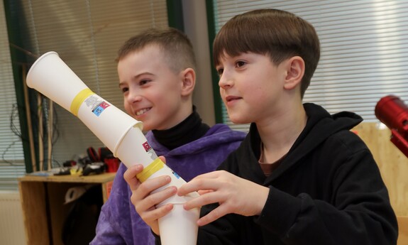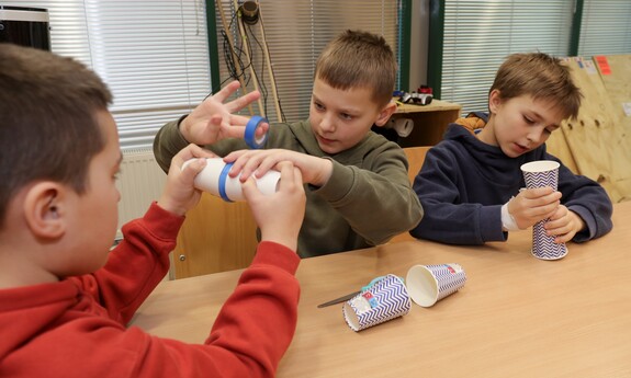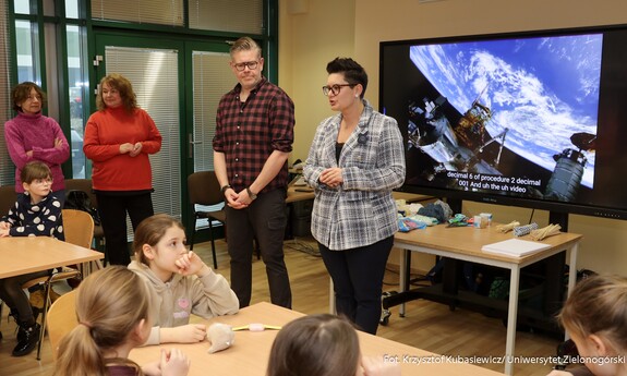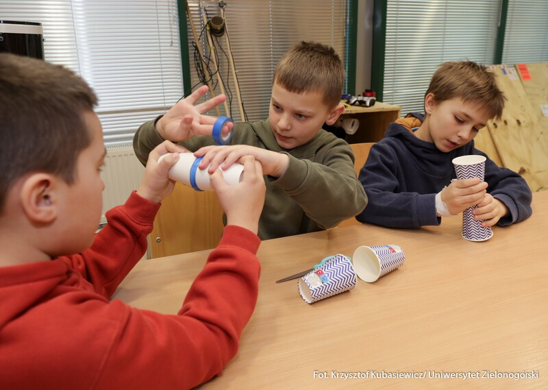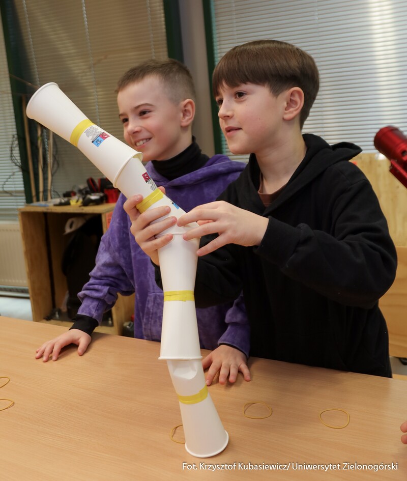 Pierwszym punktem wycieczki były warsztaty konstruktywne. Zajęcia przygotował i poprowadził dr Waldemar Grabowski z Instytut Astronomii im. profesora Janusza Gila UZ. Warsztaty były okazją nie tylko do rozmów o kosmosie, ale też do eksperymentalnych zabaw. Trzecioklasiści ze Wschowy spróbowali swoich sił i pomysłowości między innymi podczas konstruowania prostych lądowników dla astronautów. - Na warsztatach było bardzo fajnie. Sklejaliśmy kubeczki i robiliśmy z nich wyrzutnie. Musieliśmy tak to zrobić, żeby przeżyło jajko. Nasza grupa wykorzystała do tego woreczek, porwany papier i pianki. Było bardzo ciekawie - mówi Marcelina Szwarc z klasy III b.
