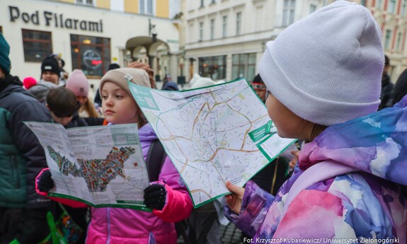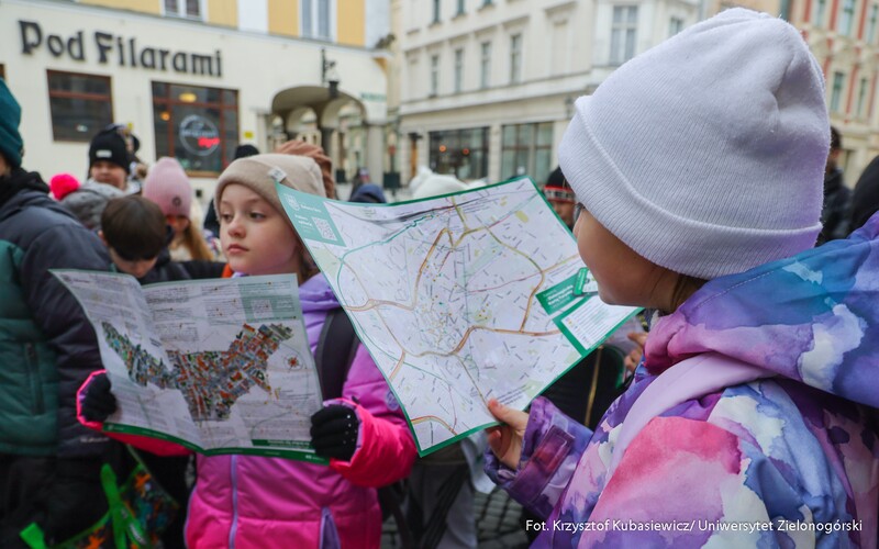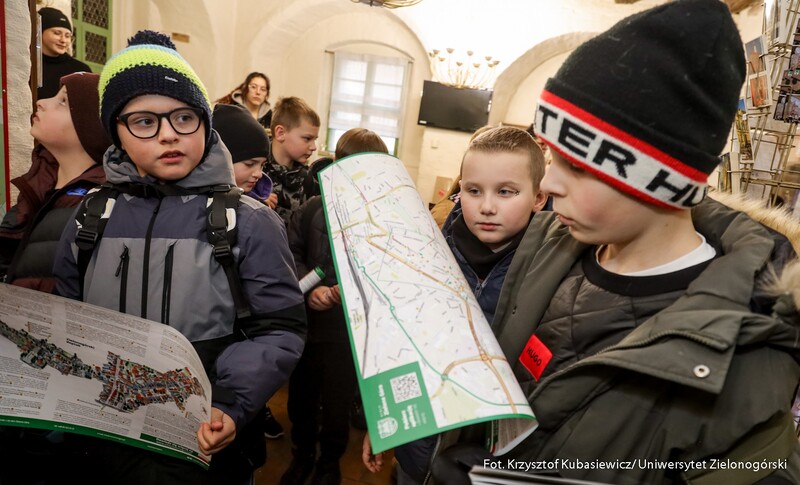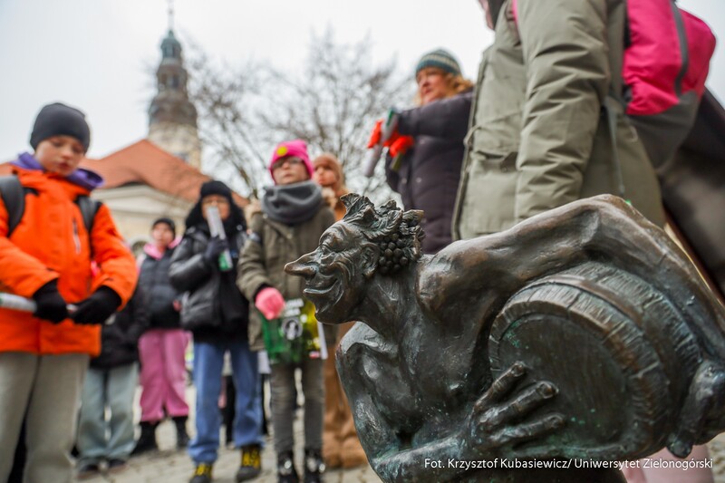 Po kosmicznej przygodzie przyszła pora na bardziej przyziemne odkrycia. Uczniowie spotkali się z przedstawicielem Visit Zielona Góra - Informacja Turystyczna i z mapami w rękach, ruszyli na poszukiwanie zielonogórskich bachusików.