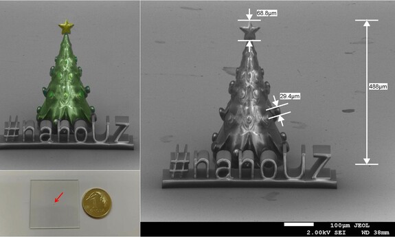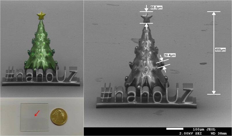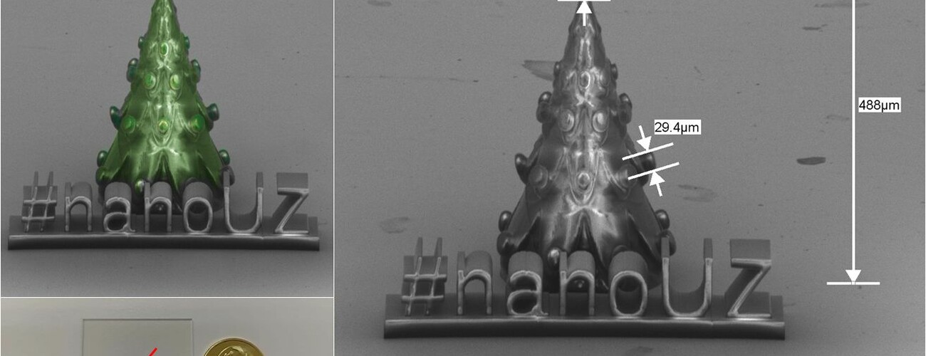Choinka została wydrukowana przez dr hab. Krzysztofa Dudka, prof. UZ z Instytutu Fizyki dzięki wykorzystaniu lasera femtosekundowego oraz technice polimeryzacji dwufotonowej przy pomocy drukarki 3D Photonic Professional GT2. Technika ta pozwala drukować z rozdzielczością na poziomie 150 nm.