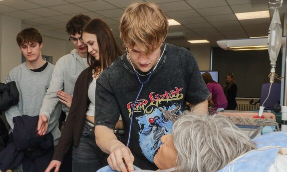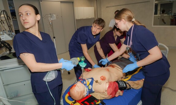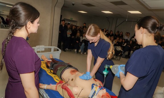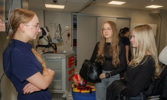 Podczas Dnia Otwartego Wydziału Lekarskiego i Nauk o Zdrowiu młodzież mogła zapoznać się z ofertą prowadzonych na Wydziale kierunków, zobaczyć jak wyglądają sale, gdzie odbywają się ćwiczenia oraz uczestniczyć w pokazie scenariusza symulacji medycznej. Jak opisuje inż. Katarzyna Pelczyńska, technik inżynieryjno-techniczny z Centrum Symulacji Medycznej – Prezentowałam salę operacyjną. Jest to sala dedykowana najczęściej do zajęć z kierunku lekarskiego. Są tutaj prowadzone zajęcia z anestezjologii. Opowiadałam o tym, jak od strony technicznej wyglądają te zajęcia. Na jakim symulatorze są tutaj przeprowadzane zajęcia oraz czego mogą się spodziewać studenci. Uczniów interesowało, czy podczas zajęć można popełniać błędy. Jak najbardziej, bo jest to cel dydaktyczny, żeby później te błędy skorygować i omówić na sali do brifingu razem z dydaktykiem. Na samym początku są tutaj zajęcia, które mają na celu pokazanie procedur jak wprowadzenie do operacji, znieczulenie pacjenta, a w późniejszym czasie wybudzenie tego pacjenta, czyli krok po kroku jak przejść całą procedurę.