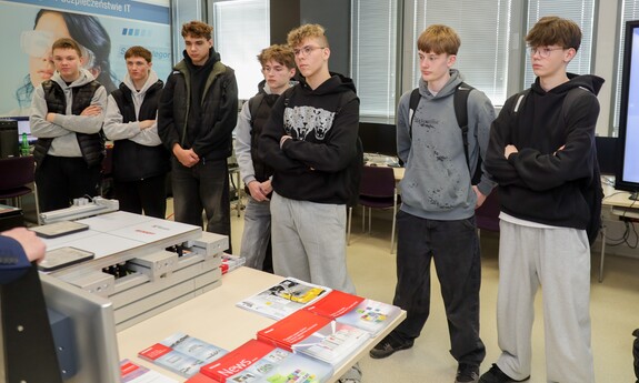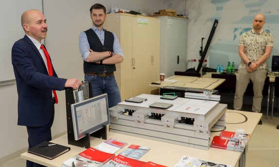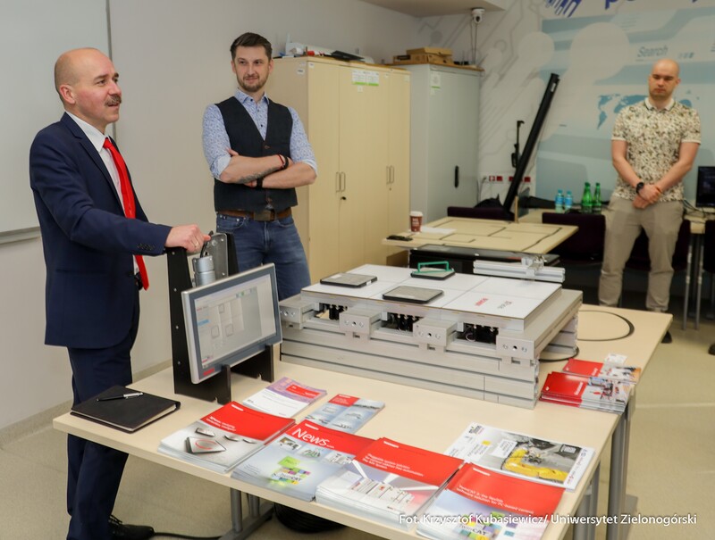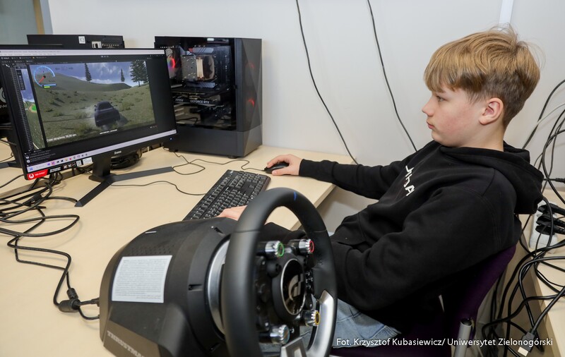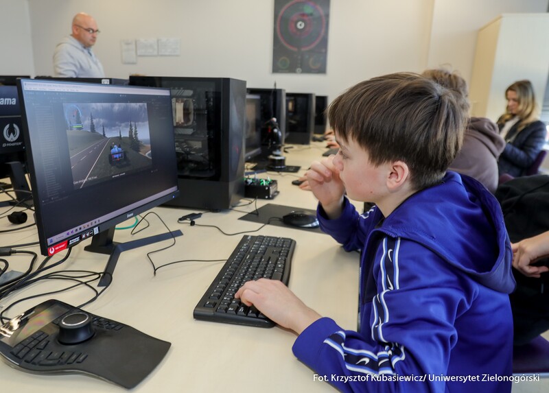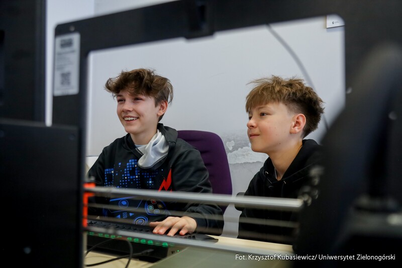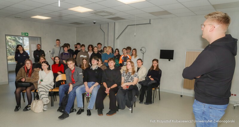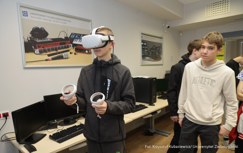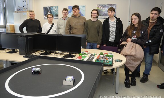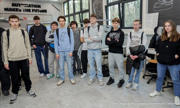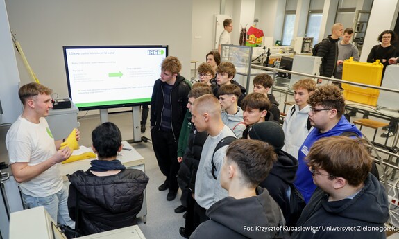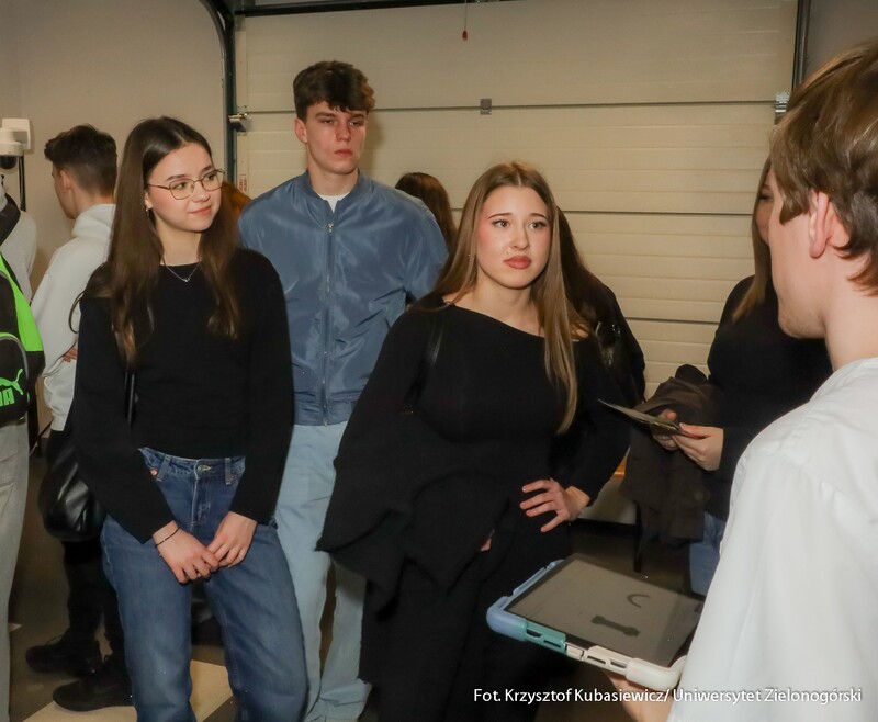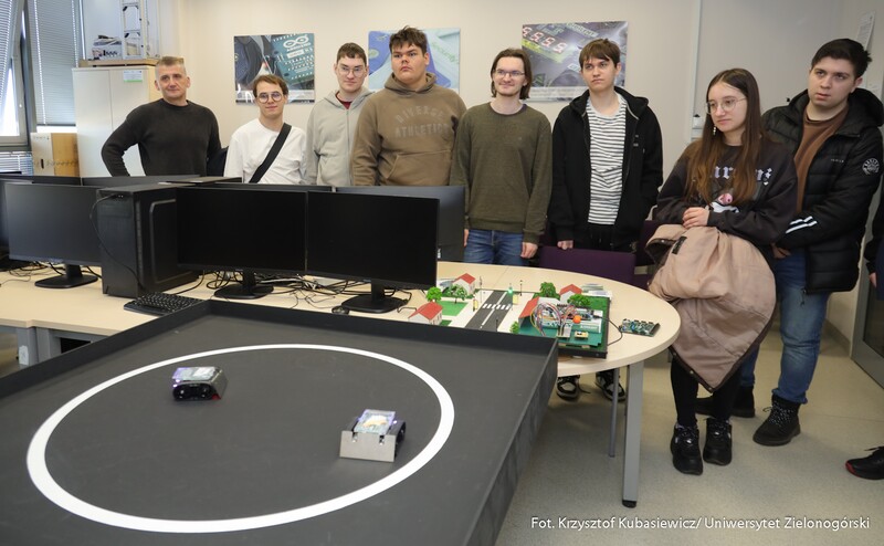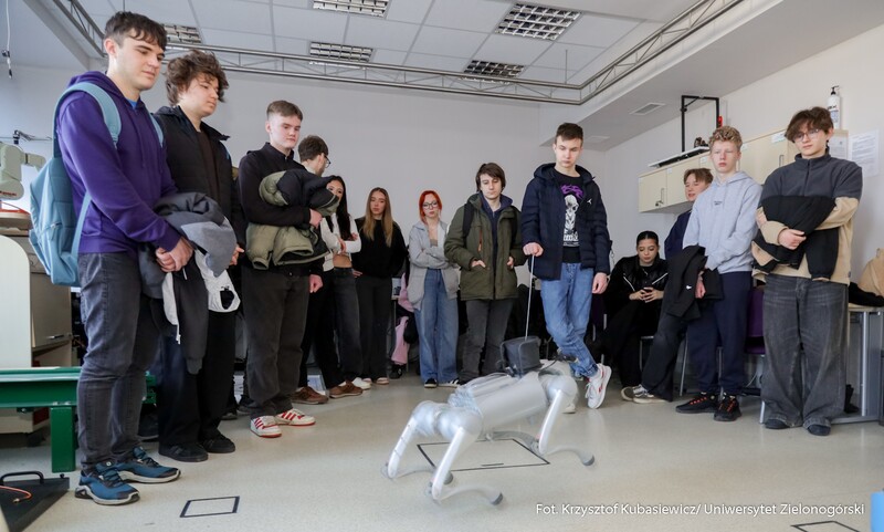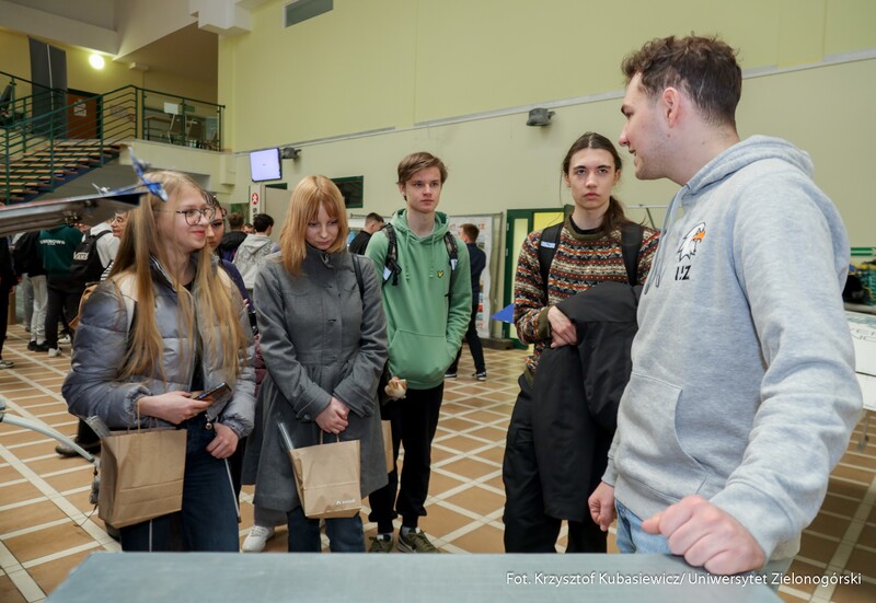 Swoje drzwi otworzyły również sale i laboratoria na Wydziale Nauk Inżynieryjno-Technicznych UZ. Na uczniów czekało sporo ciekawostek technicznych i zaproszenie do udziału w pokazach i warsztatach. Jak swoje prezentacje opisywali wykładowcy? Mgr inż. Piotr Balik z Instytutu Sterowania i Systemów Informatycznych: - Przygotowaliśmy pokaz Robotyczny Patrol – zaprezentowaliśmy sensorykę, pracę oprogramowania. To w jaki sposób robot może odnaleźć się w przestrzeni. Jak dobrze wiemy, robot nie jest tak samo zbudowany jak człowiek. Roboty mają inne „zmysły”, którymi mogą imitować ocenę odległości, wykrywanie ruchu. Chcielibyśmy pokazać przyszłym studentom w jaki sposób, my jako inżynierowie dowiadujemy się jak ten robot może się odnaleźć w przestrzeni. Jak dodaje mgr inż. Dominik Zaborniak z Instytutu Sterowania i Systemów Informatycznych – Studenci mają tu szansę realizować się, porównywać teoria - jedno, praktyka - drugie. Jeżeli ktoś lubi techniczne rzeczy, to według mnie to są świetne zajęcia, bo właśnie na takich podstawowych rzeczach może realizować swoje projekty. Np. takie sterowanie niestabilnym punktem równowagi, nie jest tylko przykład dla samego przykładu. Start rakiety to jest bardzo podobny proces – środek masy mamy wysoko zamocowany, silniki są pod spodem, cały czas trzeba balansować, żeby w odpowiedniej trajektorii lecieć. Rakiety kosmiczne jak lądują, to muszą cały czas prawie jak odwrócone wahadło balansować, tylko, że tutaj wahadło ma 1 metr, a rakieta ma 70 metrów wysokości i waży razem z całym paliwem ok. 500 ton. W innej sali uczniowie uczestniczyli w pokazie: „Cyfrowy bliźniak, czyli Automatyka i Robotyka w XXI wieku”. Jak tłumaczy dr inż. Mariusz Buciakowski z Instytutu Automatyki, Elektroniki i Elektrotechniki: – Cyfrowy Bliźniak to kopia cyfrowa maszyny. Jeżeli mamy maszyny w przemyśle, czy jakiekolwiek urządzenie i chcemy odwzorować je cyfrowo na naszym komputerze to tworzymy tzw. cyfrowego bliźniaka. Dzięki temu możemy wszystko sprawdzić, wszystko przetestować. Zobaczyć jak ta nasza maszyna, którą chcemy zbudować, jak działa, czy działa poprawnie, czy działa niepoprawnie i co musimy poprawić. Cyfrowy bliźniak nam to zapewnia i pozwala nam budować lepsze maszyny.