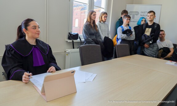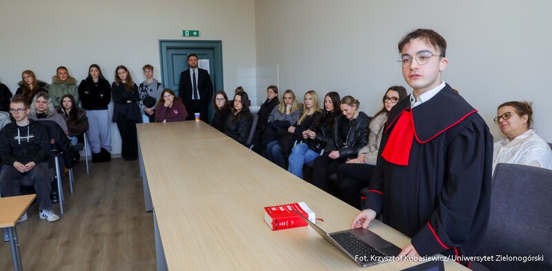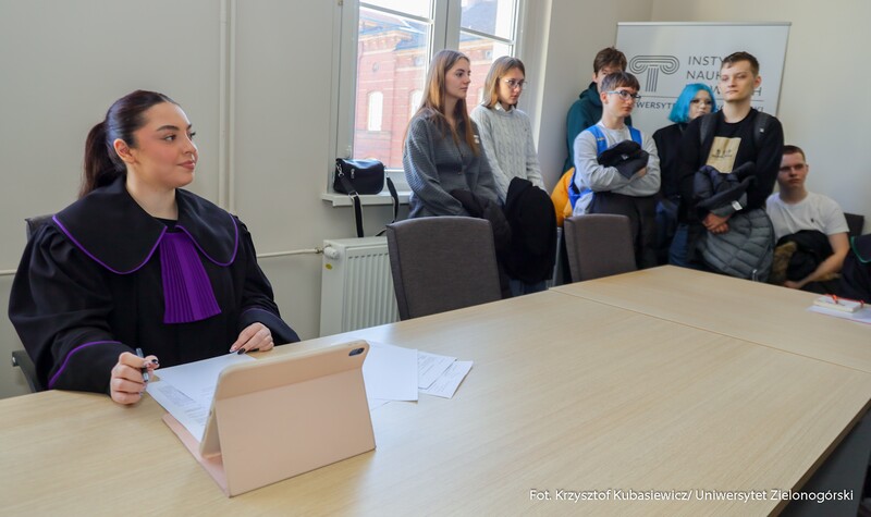 Pod wrażeniem były uczennice z III Liceum Ogólnokształcące im. prof. Tadeusza Kotarbińskiego w Zielonej Górze – Maja, Julia i Łucja: - We trójkę chodzimy do klasy III na profilu humanistyczno-prawniczym. Jesteśmy tu z racji na nasz profil. Jest to interesujące zobaczyć jak taka rozprawa sądowa wygląda od środka. Mimo, że to był tylko taki wzór. Było to interesujące i fajnie się to oglądało. Podsumowują i dodają: - Jesteśmy na Dniu Otwartym Wydziału Nauk Prawnych i Ekonomicznych, ponieważ chcemy żeby nas to naprowadziło na wybór studiów. Mamy jeszcze niecałe dwa lata aby się ukierunkować. Ciągle jeszcze myślimy co wybrać. Postanowiłyśmy, że tutaj przyjdziemy żeby zobaczyć jak to wygląda. Czy nam się podoba i czy chciałybyśmy związać z tym swoją przyszłość.