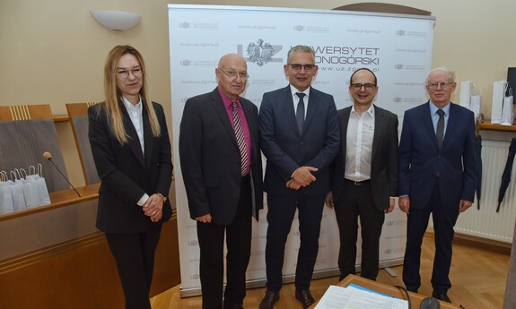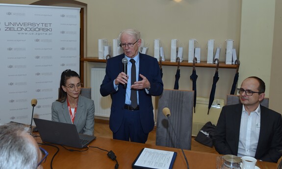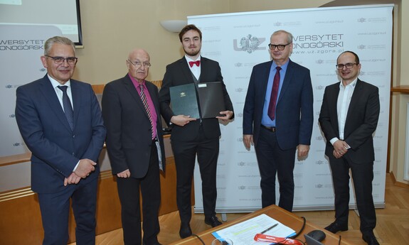 Jednym z punktów spotkania było uroczyste wręczenie tzw. „podwójnego dyplomu” Bartłomiejowi Sudołowi - kolejnemu absolwentowi Zintegrowanych Studiów Zagranicznych Technische Hochschule Mittelhessen i Uniwersytetu Zielonogórskiego (ZSZ THM-UZ). - Zintegrowane Studia Zagraniczne (ZSZ) są wspólnym przedsięwzięciem uczelni sieci CUCEE w ramach łączących je partnerskich stosunków. Jako pierwsze ZSZ utworzone zostały pomiędzy THM i UZ już w 1998 roku. W następnych latach utworzono ZSZ pomiędzy THM i kolejnymi uczelniami partnerskimi. Studia te prowadzone są w dwóch językach – częściowo na uczelni macierzystej, a częściowo na uczelni partnerskiej. Kończą się pracą dyplomową, mającą opiekunów ze strony obu uczelni. Absolwenci otrzymują jednocześnie dyplom ukończenia uczelni macierzystej i THM. Dotychczas w ZSZ uczestniczyło ponad 100 studentek i studentów uczelni partnerskich, z czego 57 osób z UZ. Pierwszy absolwent ZSZ THM-UZ ukończył studia w 2001 r. Warto w tym miejscu dodać, że w roku akademickim 2014/2015 utworzone zostały ZSZ Uniwersytetu Zielonogórskiego i Uniwersytetu Technicznego im. Gedymina w Wilnie (VGTU). W tych polsko-litewskich studia uczestniczyło dotychczas 3 studentów z VGTU, a wydany w roku 2016 podwójny dyplom był pierwszym takim dyplomem na UZ. – tłumaczy prof. dr hab. inż. Ryszard Rybski, dyrektor Instytutu Metrologii, Elektroniki i Informatyki UZ oraz pełnomocnik Rektora UZ ds. Współpracy Zagranicznej w Ramach Sieci CUCEE.