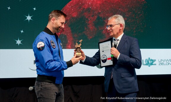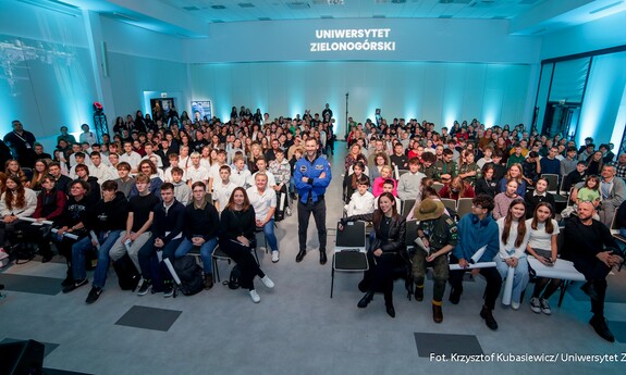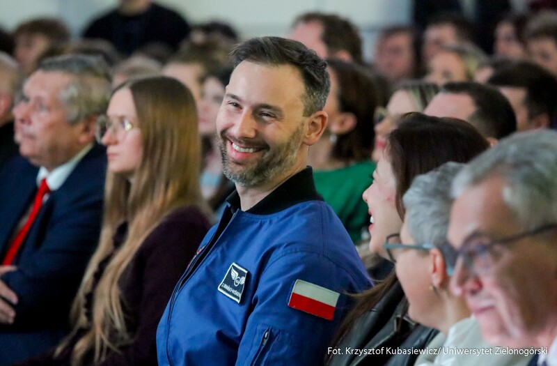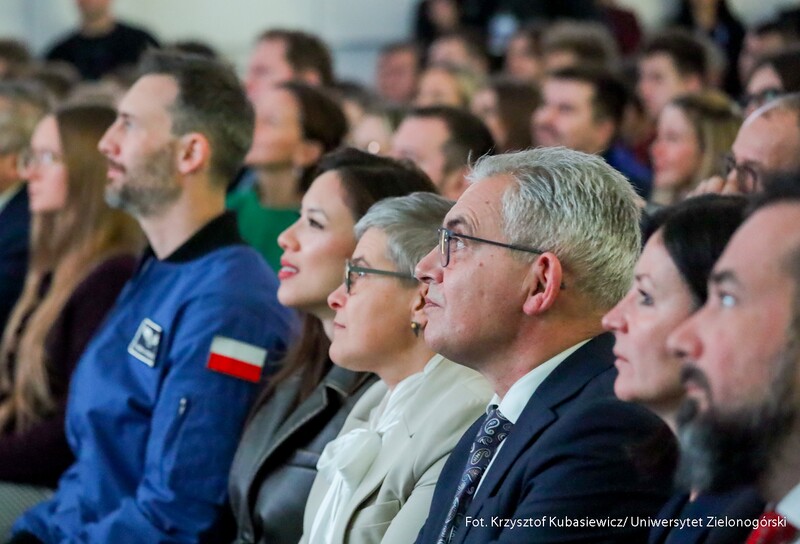 Wizytę drugiego Polaka w przestrzeni kosmicznej dr. Sławosza Uznańskiego-Wiśniewskiego podzielono na dwie części – akademicką oraz edukacyjną. Pierwszą z nich rozpoczęła prezentacja filmu o misji IGNIS, oficjalne wejście astronauty do auli oraz powitanie gości przez prof. dr. hab. Wojciecha Strzyżewskiego – Rektora Uniwersytetu Zielonogórskiego. – Nasz dzisiejszy gość to nie tylko astronauta, to także naukowiec. Wybrał trudną karierę naukową, do której doszły marzenia i podbój kosmosu. I tutaj mówię przede wszystkim do studentów – Wy także powinniście znaleźć miejsce dla siebie. Dziedzinę, z której chcecie być znani i która Was interesuje. Trudno też wyobrazić sobie lepsze miejsce na spotkanie z astronautą, niż Park Technologii Kosmicznych. Mam nadzieję, że dzisiejsze wydarzenie przyczyni się do tego, żeby było to miejsce, w którym tworzy się rzeczy na potrzeby przestrzeni kosmicznej – mówił prof. dr. hab. Wojciech Strzyżewski, Rektor Uniwersytetu Zielonogórskiego.