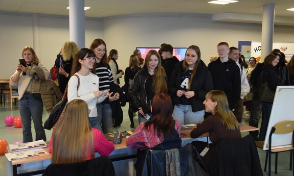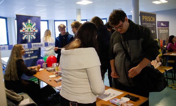 15 października br. naszą uczelnię odwiedziło ok. 1300 uczniów szkół średnich z województwa lubuskiego oraz ościennych regionów. Ugościliśmy ich na kampusie A w budynku A-29, gdzie aż na 6 kondygnacjach rozmieszczone były punkty programu podzielone na tematyczne strefy. Chcieliśmy zachęcić młodzież do pobudzenia umysłu i chłonięcia wiedzy w praktyczny sposób w murach naszej uczelni. Miało to ułatwić im odnalezienie swojej przyszłej drogi oraz pomóc w pozbyciu się stresu i niepewności przed nowym rozdziałem. Studia to rzecz jasna poważny wybór, jednak powinny też kojarzyć się z najlepszym okresem w życiu, rozwijaniem hobby i nowymi możliwościami.