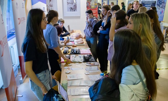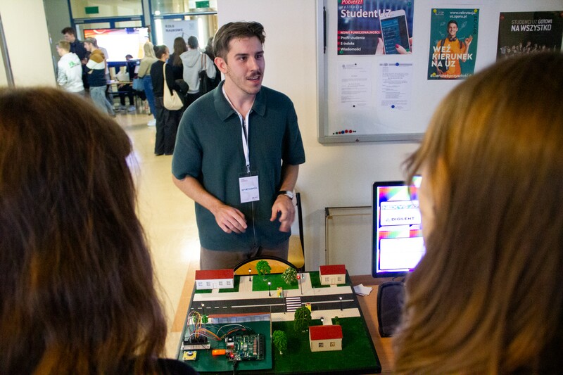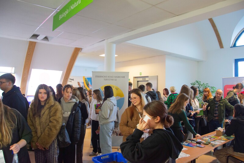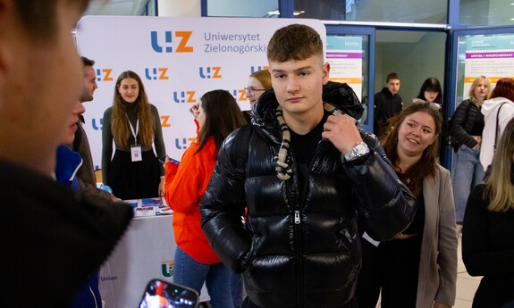 Od razu po wejściu do budynku, gości witali studenci - przewodnicy wydarzenia. Na parterze w części Informacja i Promocja, jak sama nazwa wskazuje, można było zaczerpnąć informacji o ogólnej ofercie dydaktyczno-naukowej uczelni, życiu studenckim, zasadach rekrutacji, akademikach i stypendiach, a także o naszym regionie. Pojawiło się również stoisko związane z wyjazdami na zagraniczne studia i praktyki. Tuż obok, redaktor Mateusz Kasperczyk z Radia Index prowadził rozmowy z wystawcami, opowiadał o działalności mediów akademickich UZ oraz zapowiadał inne punkty programu Dnia Otwartego. A co takiego przygotowaliśmy?