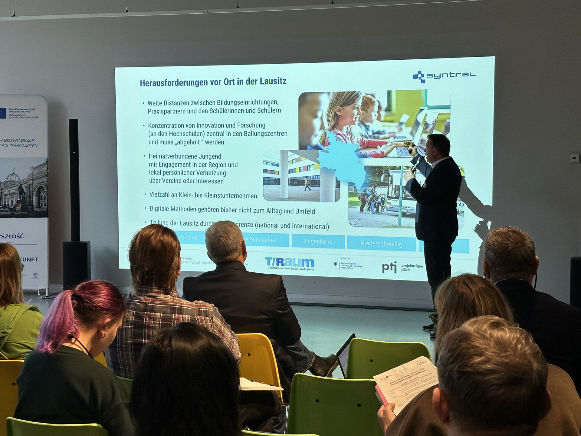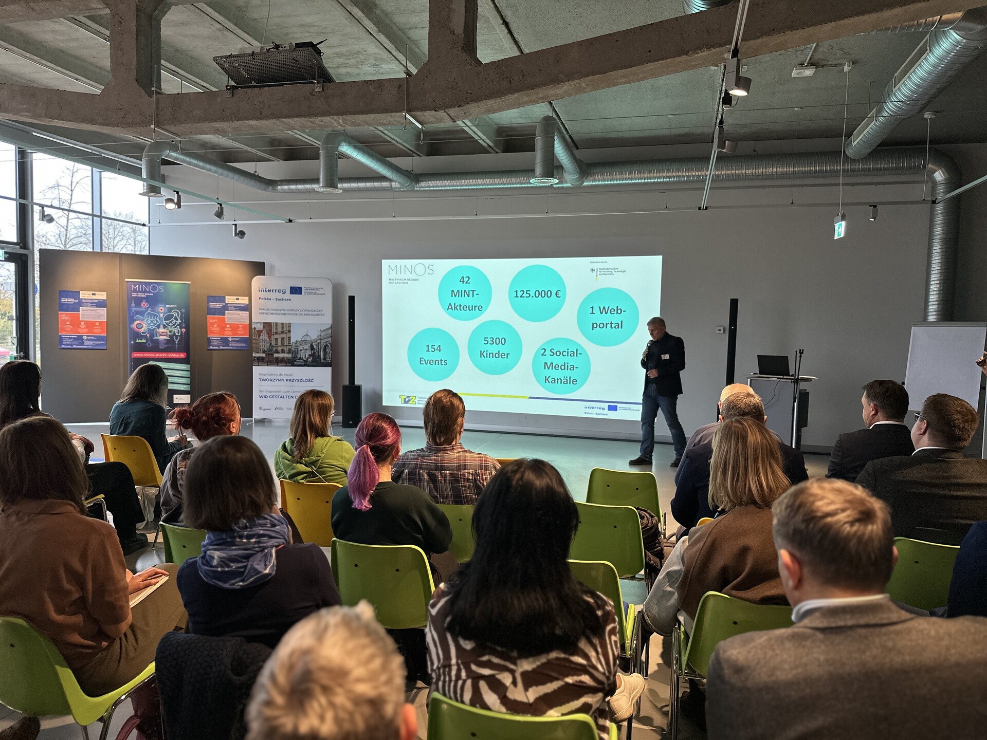 Dzisiejsze wydarzenie połączyło przedstawicieli polskich i niemieckich instytucji działających na rzecz popularyzacji nauk ścisłych i technologicznych (STEM) wśród dzieci i młodzieży. Podczas spotkania uczestnicy mieli okazję wymienić doświadczenia i poznać przykłady inspirujących inicjatyw edukacyjnych realizowanych po obu stronach granicy. Wśród prelegentów znaleźli się m.in. przedstawiciele Politechniki w Dreźnie, Instytutu Badawczego Łukasiewicz – PORT z Wrocławia, Niemieckiego Centrum Astrofizyki (DZA) oraz Centrum Witelon w Legnicy. Ich prezentacje dotyczyły m.in. nowych metod przekazywania wiedzy, budowania kompetencji przyszłości oraz roli współpracy transgranicznej w rozwijaniu edukacji STEM.