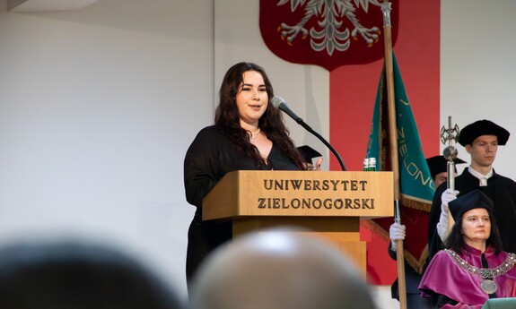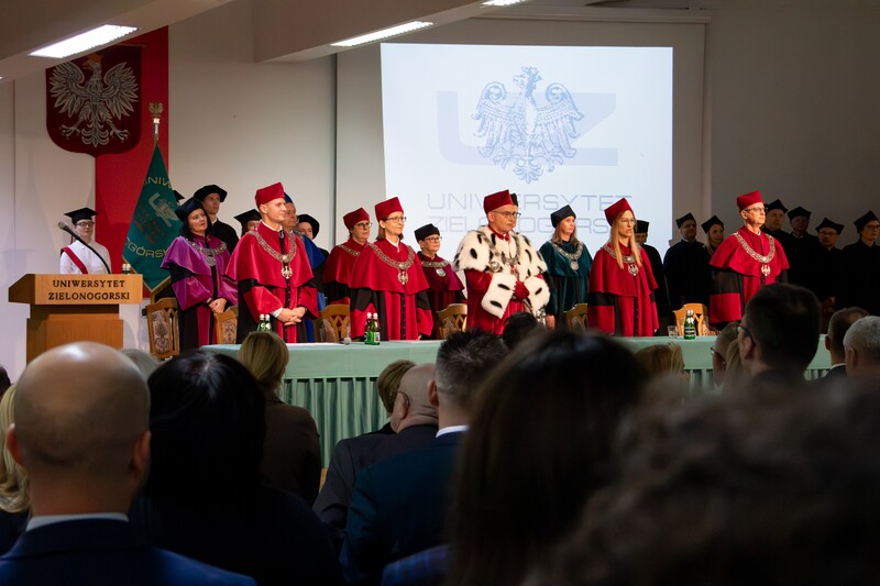 Zwieńczeniem uroczystości było natomiast GAUDEAMUS IGITUR w wykonaniu Chóru Akademickiego Uniwersytetu Zielonogórskiego pod dyrekcją dr hab. Łucji Nowak, prof. UZ z Instytutu Muzyki.