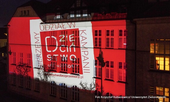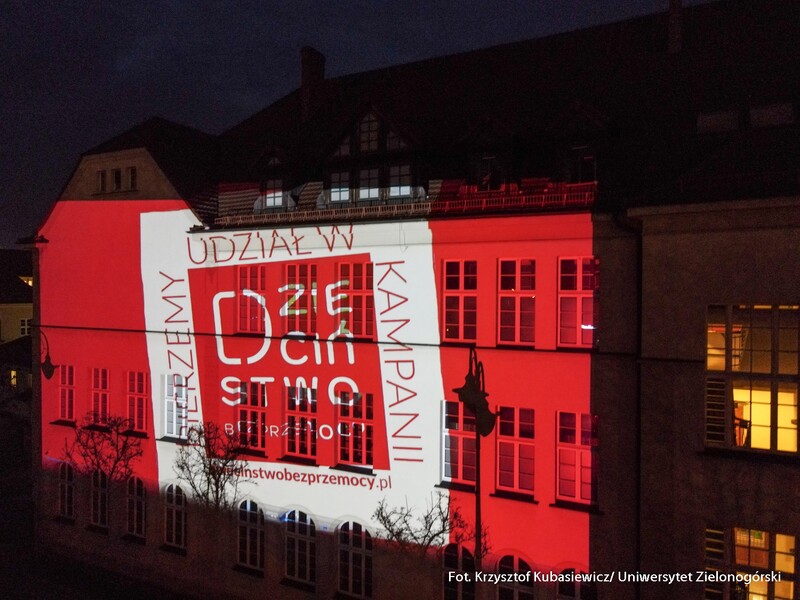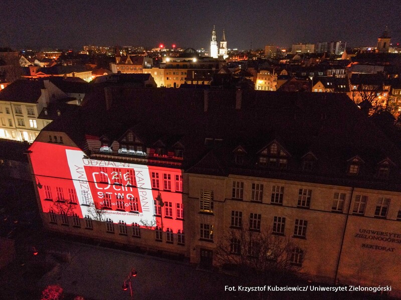 Rektorat Uniwersytetu Zielonogórskiego jednym z kilkunastu budynków, które w środę 19 listopada br. punktualnie o godzinie 17 rozświetliły się w Zielonej Górze na czerwono. Wszystko w ramach II ogólnopolskiej kampanii "Dzieciństwo bez Przemocy” - czyli corocznej inicjatywy, mającej na celu ochronę dzieci przed przemocą i budowanie dla nich bezpiecznego oraz wspierającego dzieciństwa.