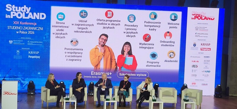 Przedstawiciele Uniwersytetu Zielonogórskiego uczestniczyli w konferencji „Studenci zagraniczni w Polsce 2026”, która odbyła się w dniach 28–30 stycznia br. w Auditorium Maximum Uniwersytetu Jagiellońskiego w Krakowie. Wydarzenie zgromadziło przedstawicieli władz uczelni, instytucji publicznych oraz ekspertów, zajmujących się umiędzynarodowieniem szkolnictwa wyższego. Konferencja stanowiła jedno z najważniejszych forów debaty w tym obszarze w Polsce.