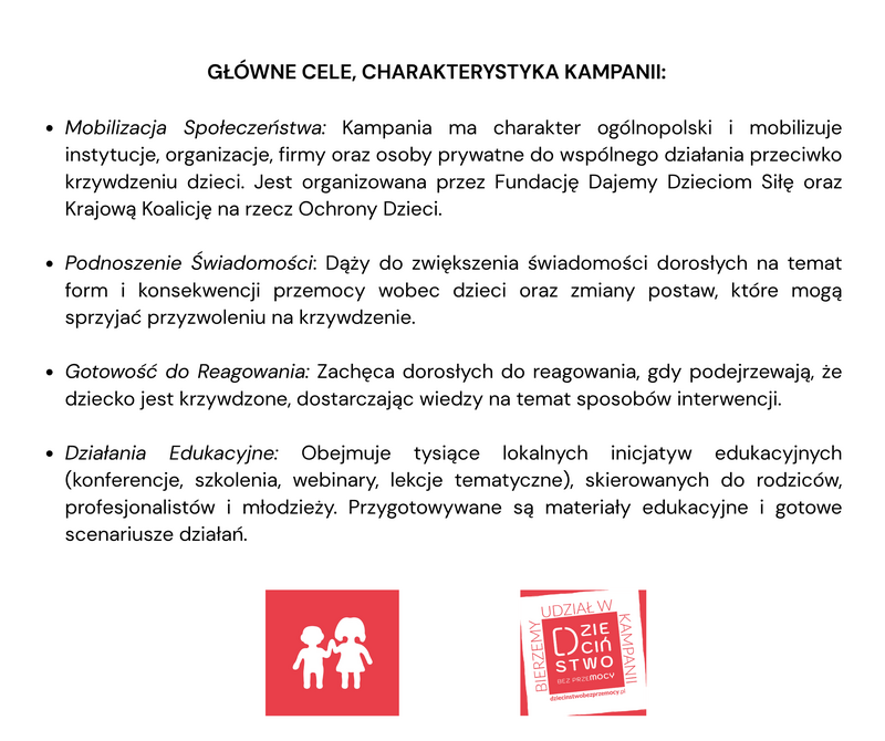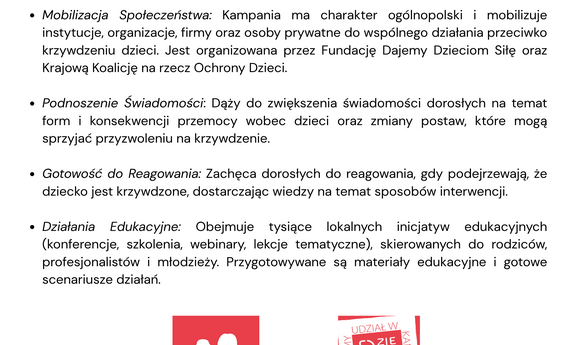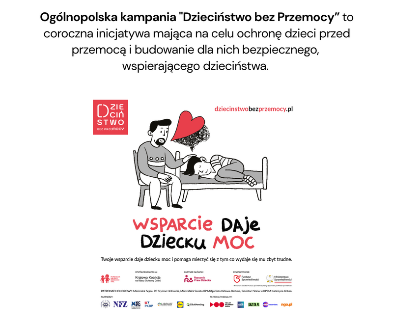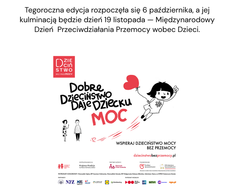 Kampania organizowana przez Fundację Dajemy Dzieciom Siłę oraz Krajową Koalicję na rzecz Ochrony Dzieci.