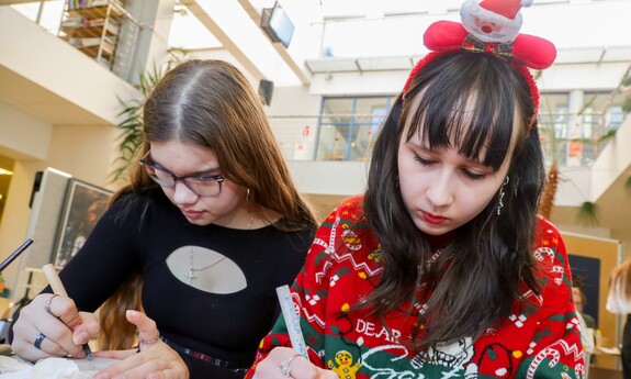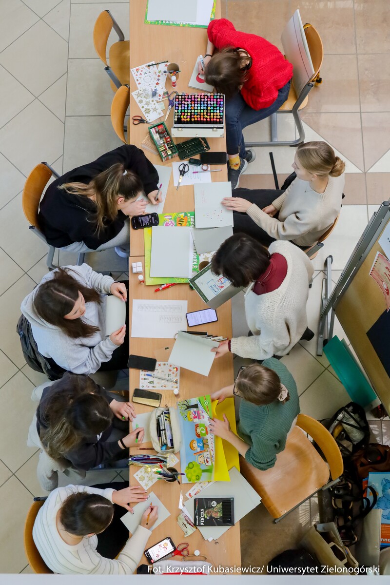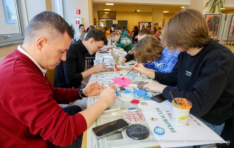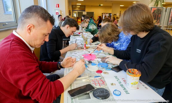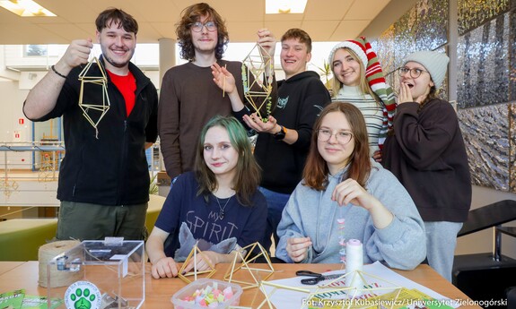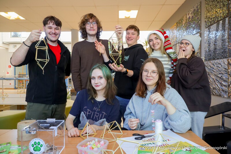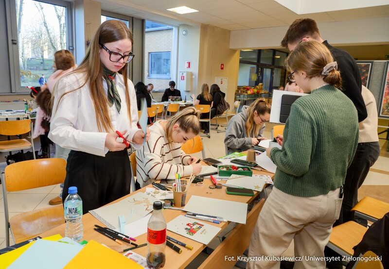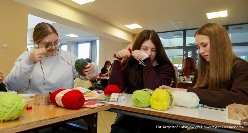 15 grudnia br. na Kampusie A w budynku A-8 Instytut Architektury i Urbanistyki UZ Koło Naukowe "Tekturka" zorganizowali świąteczne warsztaty i kreatywne stanowiska. Archi-Mikołajki 2025, bo pod takim hasłem odbyło się to wyjątkowe świąteczne wydarzenie przyciągnęło wielu zainteresowanych. Uczestnicy mogli wziąć udział w twórczych warsztatach, gdzie wykonywano m.in. gipsowe dekoracje 3D, papierowe gwiazdy, wieńce z pomponów, czy ażurowe bombki ze sznurka. Studenci wykonali również kartki świątecznych dla podopiecznych Domu Seniora. Przeprowadzono także zbiórkę darów dla Schroniska dla Bezdomnych Zwierząt w Zielonej Górze.