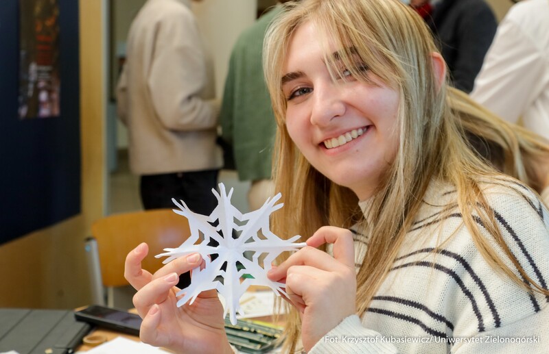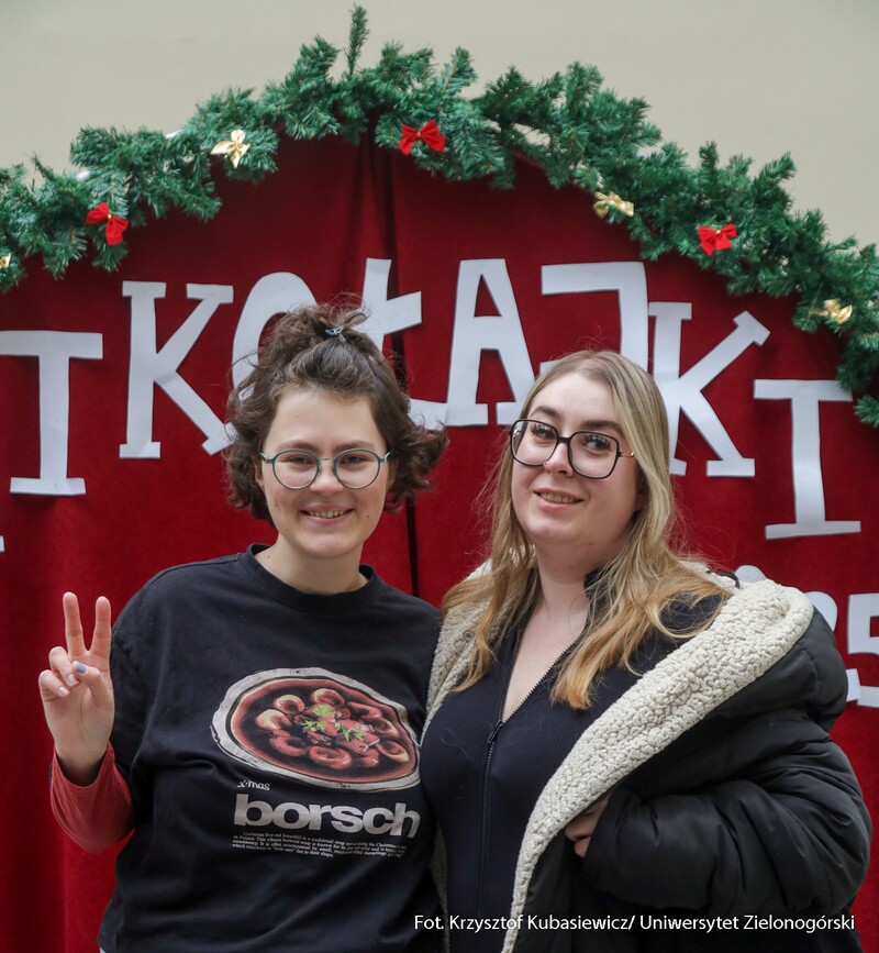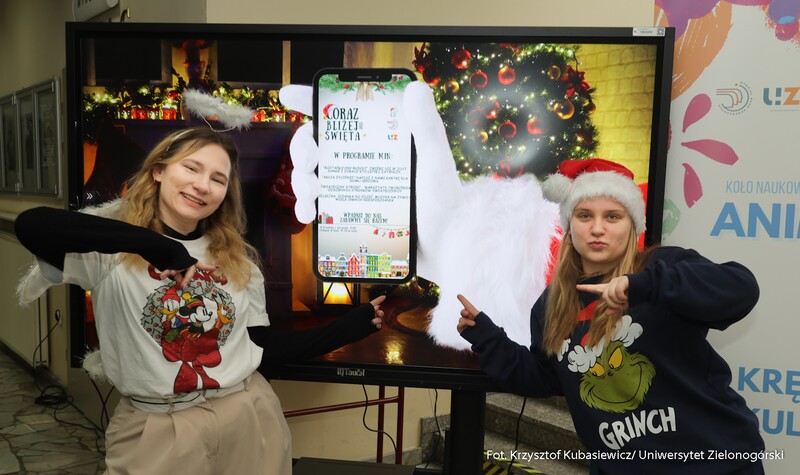 "Coraz bliżej święta" pod takim hasłem Koło Naukowe Animacja UZ zachęcało do integracji 4 grudnia br. na Kampusie B, by wspólnie celebrować zbliżające się Święta Bożego Narodzenia. Jak wymieniała Zuzanna Puls, studentka I roku animacji kultury i twórczej działalności w sieci, koordynatorka projektu „Coraz bliżej święta”: To już jest nasza tradycja świąteczna. Kierunek animacja kultury i twórczej działalności w sieci, od kilku lat organizuje to wydarzenie. Wspólnie wykonywaliśmy ozdoby świąteczne. Było też karaoke z kolędami oraz tańce. Przygotowaliśmy również specjalnie na tę okazję ściankę zdjęciową, na której fotograf robił wszystkim zainteresowanym pamiątkowe zdjęcia. Wymienia studentka i dodaje: - Myślę, że takie inicjatywy mogą szerzyć radość i taką iskrę świąteczną. Przypominamy o tym, że faktycznie coraz bliżej są święta. Chcemy wspólnie wejść w tą atmosferę, szerzyć radość i dobro. Chcemy też sprawić, aby uśmiech pojawił się na twarzach studentów i wykładowców. Jak dodaje Julia Juś, studentka II roku animacji kultury i twórczej aktywności w sieci – Jest to świetna okazja do integracji z innymi kierunkami. Staramy się również zwrócić uwagę na osoby starsze. Dlatego jednym z elementów naszej akcji było wykonanie kartki świątecznej dla osób w Domu Seniora. Zdarza się, że są samotni w święta i chcemy dać im znać, że ktoś o nich pamięta. Co roku staramy się zaszczepiać we wszystkich ten świąteczny klimat.