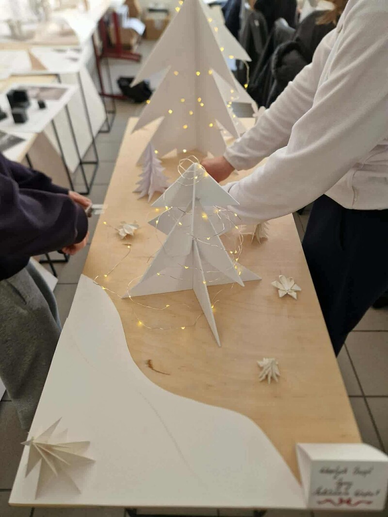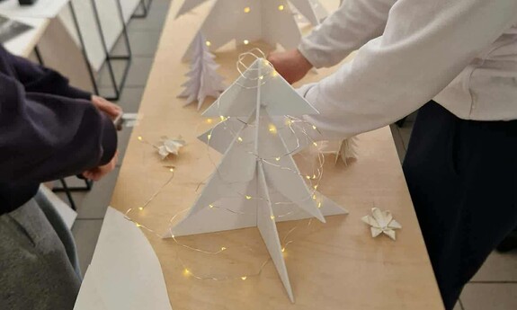 18 grudnia br. w Instytucie Sztuk Wizualnych UZ zrealizowano świąteczne zajęcia. Studenci architektury wnętrz przygotowywali przestrzenne życzenia świąteczne w postaci papierowych choinek. Testując przeróżne próbki konstrukcji świątecznych, udało im stworzyć nietuzinkowe dekoracje.