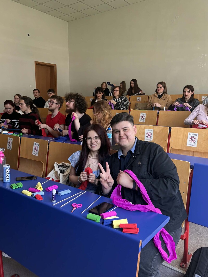 Tegoroczna odsłona wydarzenia zakończyła się praktycznymi zajęciami twórczymi, podczas których uczestnicy mogli sprawdzić swoje zdolności manualne, wykonując kwiaty z bibuły pod okiem instruktorki Aidy Aławerdian - studentki lingwistyki stosowanej.