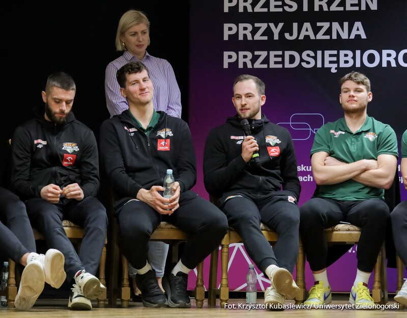 Wtorkowe spotkanie było okazją nie tylko do podpisania listu intencyjnego. Uczestnicy wydarzenia - w tym studenci Uniwersytetu Zielonogórskiego - mieli wyjątkową okazję do porozmawiania z zawodnikami zielonogórskiej drużyny koszykarskiej. Pytania z widowni do graczy klubu ORLEN Zastal Zielona Góra dotyczyły między innymi ich sposobów na radzenie sobie ze stresem, dbałości o ciało i dietę, atmosferę w drużynie oraz co myślą o połączeniu sportu z nauką. Nie zabrakło także pamiątkowych zdjęć i autografów.