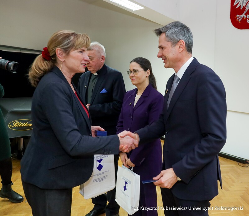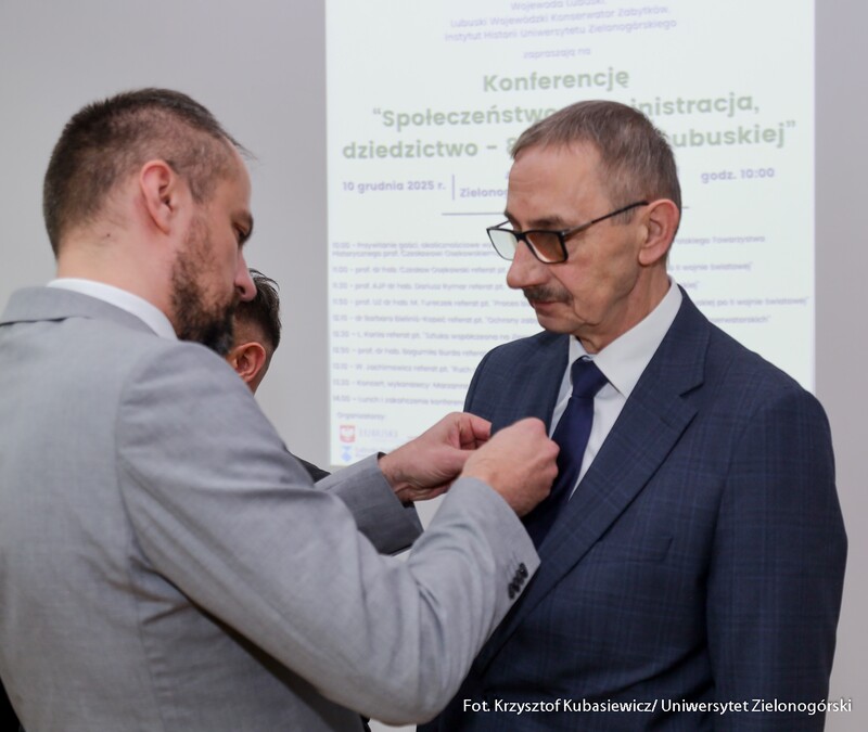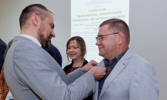 Further distinctions were also awarded during the conference. In recognition of outstanding contributions to the development of the Lubusz Region, the Regional Assembly of the Lubusz Voivodeship awarded Honorary Badges for Meritorious Service to the Lubusz Voivodeship. The awards were presented by Edward Fedko, Vice-Chair of the Regional Assembly, and Anna Chinalska, Member of the Regional Board, to two staff members of the Institute of History at the University of Zielona Góra – Prof. Marceli Tureczek, PhD, DSc, and Prof. Joachim Zdrenka, PhD, DSc.