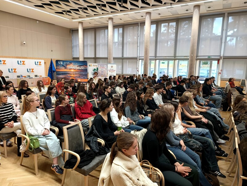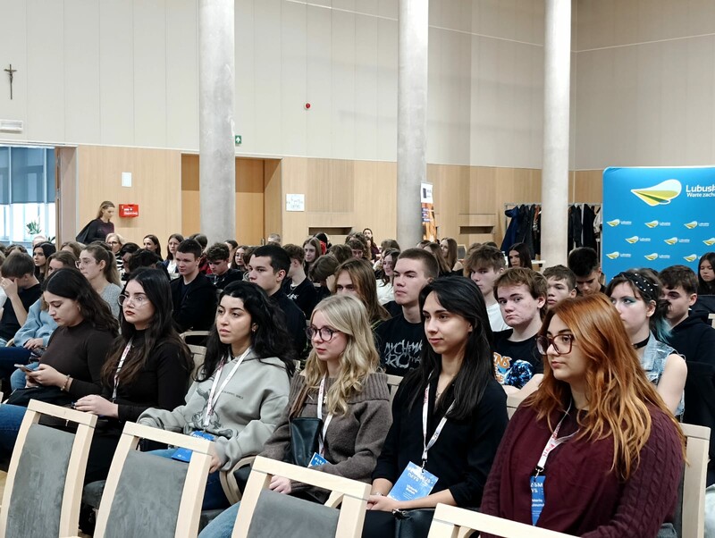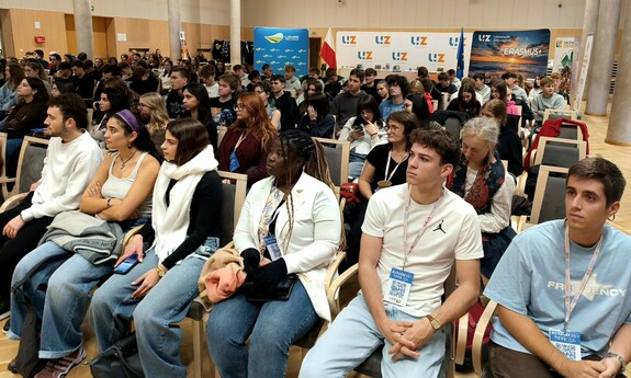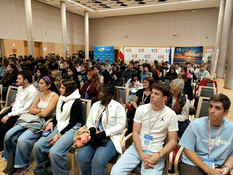 On 16 October 2025, a special #ErasmusDays event organised by the University of Zielona Góra took place in the Column Hall of the Marshal’s Office of the Lubuskie Region. The meeting brought together UZ students as well as pupils from the 3rd, 4th and 5th Secondary Schools in Zielona Góra. The aim of the event was to present the idea behind the Erasmus+ programme, promote academic mobility, and foster openness and intercultural cooperation.