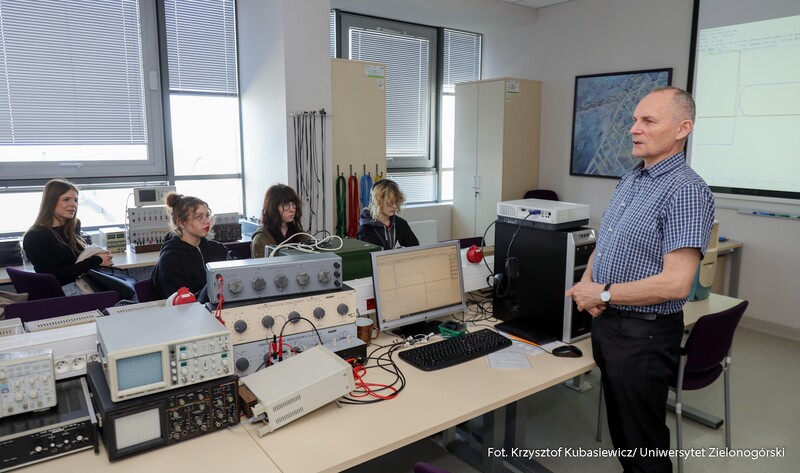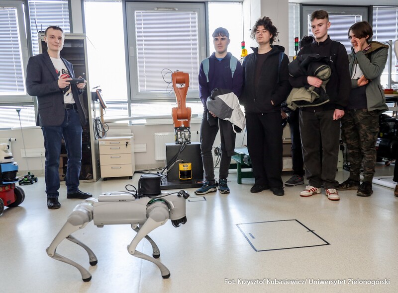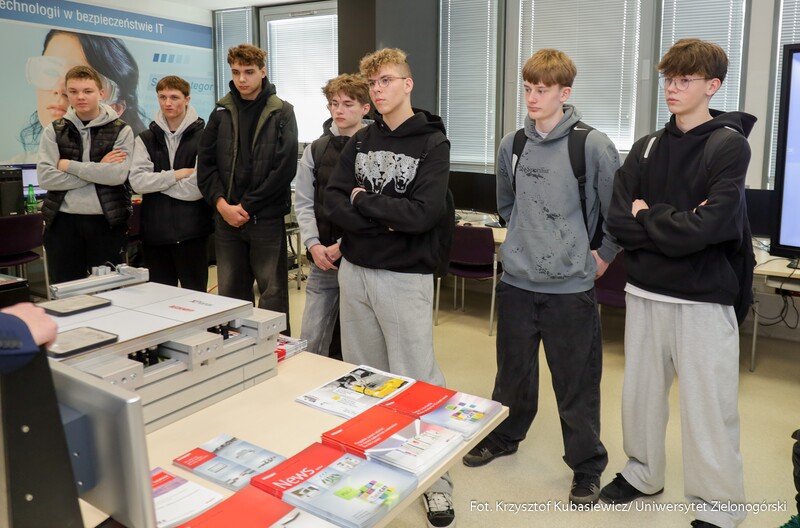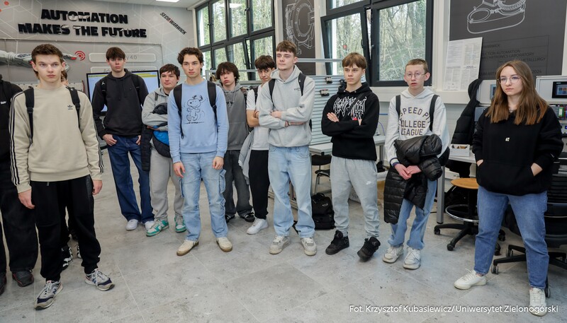 In another classroom, students attended a presentation titled “Digital Twin – Automation and Robotics in the 21st Century.” As explained by Dr. Eng. Mariusz Buciakowski from the Institute of Automation, Electronics and Electrical Engineering at UZ: