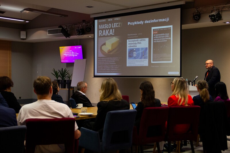 Next, the discussion naturally shifted toward verifying sources and resisting false information, the focus of the lecture by Prof. Paweł Walczak from the Institute of Philosophy at UZ: “How to Fight Fake News and Scientific Disinformation in Social Media and Beyond?” Prof. Walczak stressed the importance of abandoning hostile battles against opposing views in favor of constructive discussion, understanding the other side, and cultivating critical thinking. Key steps include analysis, reasonable evaluation of information, checking multiple sources, viewing issues from different perspectives, and drawing logical conclusions. We should neither close ourselves off from the world nor allow ourselves to be manipulated. For marketers and journalists, it is equally important to communicate credibly and in line with facts. A worrying trend he highlighted is society’s growing distrust of scientists: they are losing the status of authorities, and their mistakes—natural and necessary for progress—are judged harshly. This creates an urgent need to build a trustworthy and expert image of universities and researchers in an accessible manner.