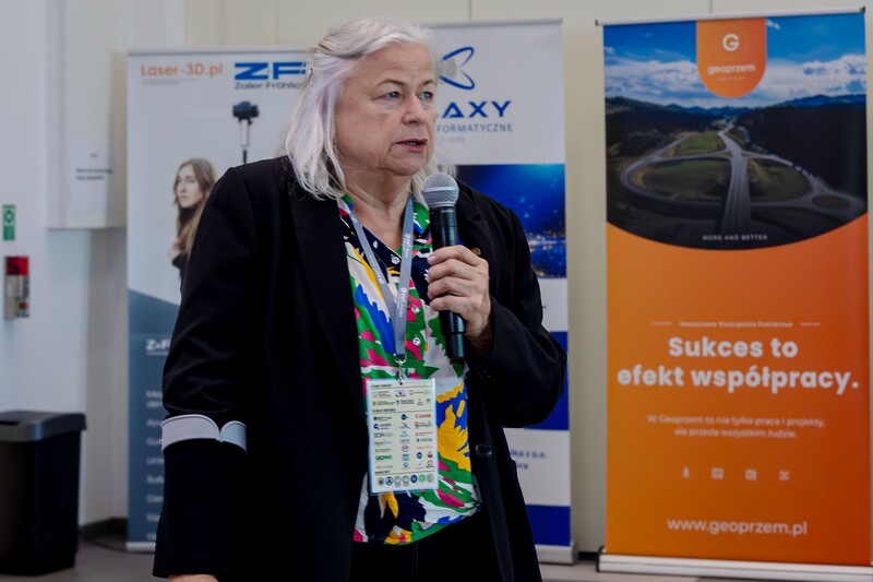 The 2nd Geoinformatics Congress consisted of fifteen discussion panels. “We have two days of conversations ahead of us. We discuss, among other things, how to expand knowledge about technology and its applications, for example in navigation or terrain information. Land Information Systems are tools that assist us in many areas of everyday life, such as navigating roads, obtaining information about individual plots of land, or completing applications at municipal offices. Science provides numerous possibilities and tools based on geoinformation. Thanks to it, we can discuss space not only in 3D but also in 4D. Knowledge and its applications are developing so rapidly that we eagerly anticipate new innovations. Our partners from the business sector, also present at the Congress, demonstrate ever-broader applications,” said Dr. Anna Bazan-Krzywoszańska, Professor at UZ, from the Institute of Architecture and Urban Planning, Head of the Department of Urban Design, Spatial Planning and GIS, and the University-wide Laboratory of Geospatial Analysis.