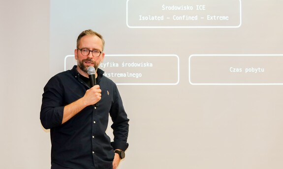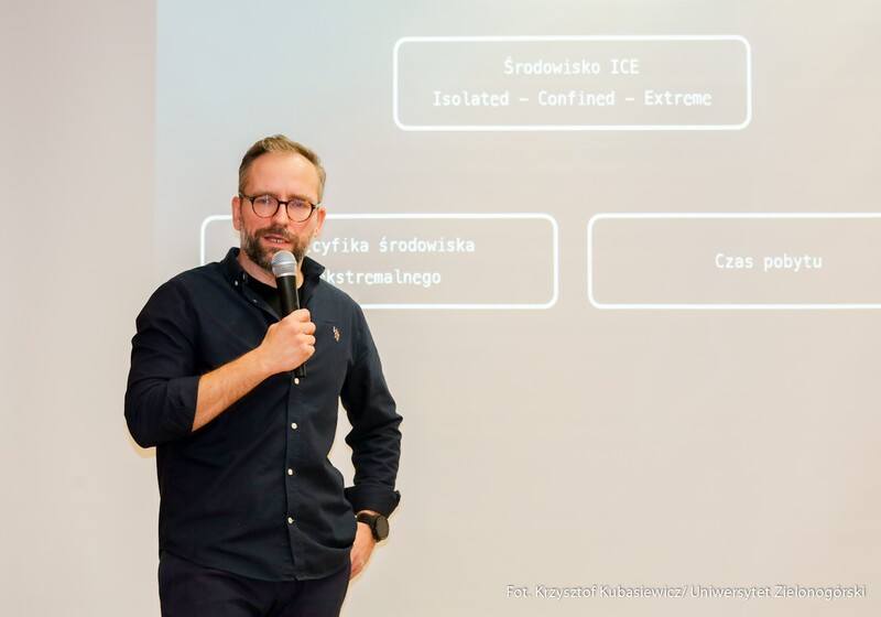 Meanwhile, Konrad Opaliński, MSc, from the Institute of Psychology of the University of Zielona Góra, presented a talk entitled “Psychology in Microgravity – Issues of Psychological Research in the Space Environment Based on the AstroMentalHealth Project.” He shared reflections on the design, preparation, and implementation of research in extreme environments, including the International Space Station and the analogue space habitat Lunares.