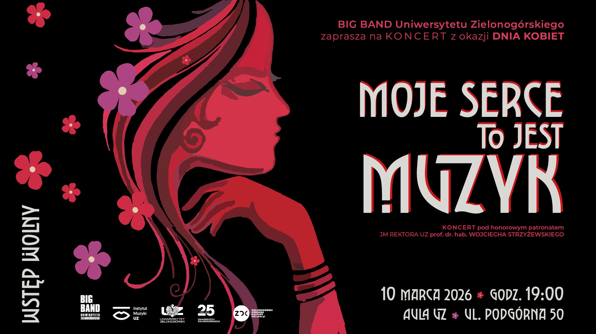 Rektor Uniwersytetu Zielonogórskiego oraz Big Band Uniwersytetu Zielonogórskiego zapraszają na koncert pt. „Moje serce to jest muzyk” z okazji Dnia Kobiet, który odbędzie się 10 marca br. o godz. 19:00 w auli UZ przy ul. Podgórnej 50 w Zielonej Górze.