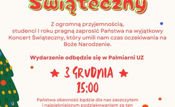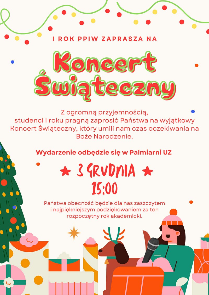 Studenci I roku PPiW mają zaszczyt zaprosić na wyjątkowy Koncert Świąteczny, który umili Państwu czas oczekiwania na Boże Narodzenie.