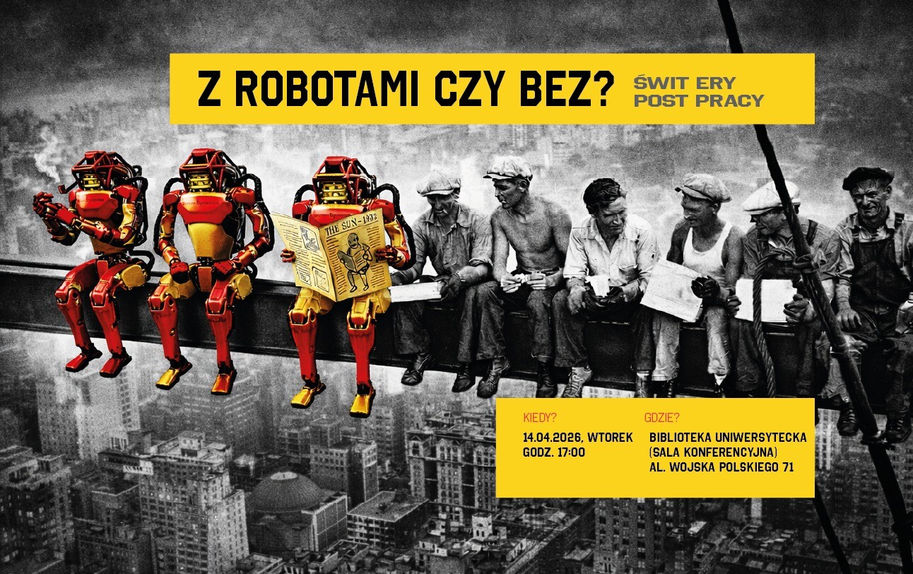 Otwarta grupa metabadawcza 'AM I AI?' działająca przy Instytucie Filozofii UZ oraz Katedrze Logistyki i Systemów Informacyjnych UZ zaprasza na panel dyskusyjny "Z robotami czy bez? Świt ery post pracy".