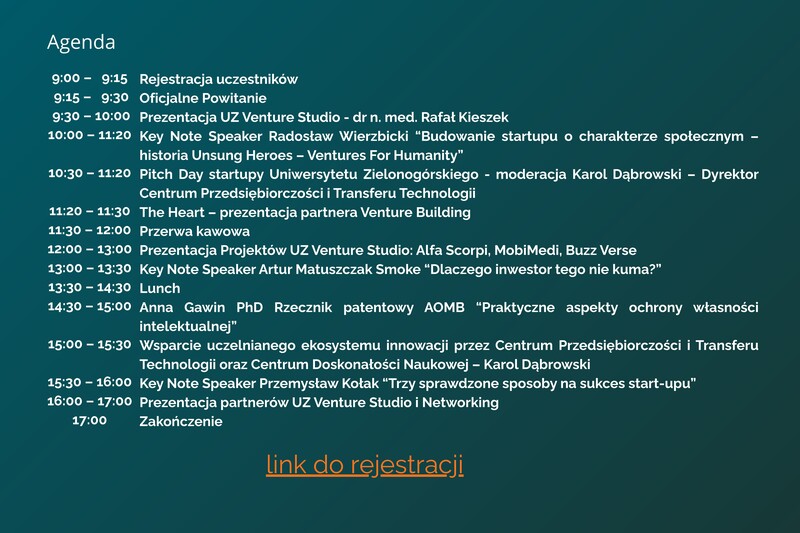 9:30 - 10:00 Prezentacja UZ Venture Studio