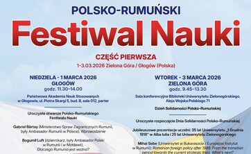 Na przełomie lutego i marca odbędą się dwa komplementarne, wzajemnie uzupełniające się wydarzenia, poświęcone współpracy polsko-rumuńskiej w obszarze nauki, edukacji i dialogu akademickiego. Jednym z nich będzie Polsko-Rumuński Festiwal Nauki, którego centralnym punktem stanie się Dzień Solidarności Polsko-Rumuńskiej 3 marca. Festiwal będzie realizowany w Zielonej Górze oraz Głogowie z udziałem przedstawicieli środowisk dyplomatycznych i naukowych polskich i rumuńskich.
