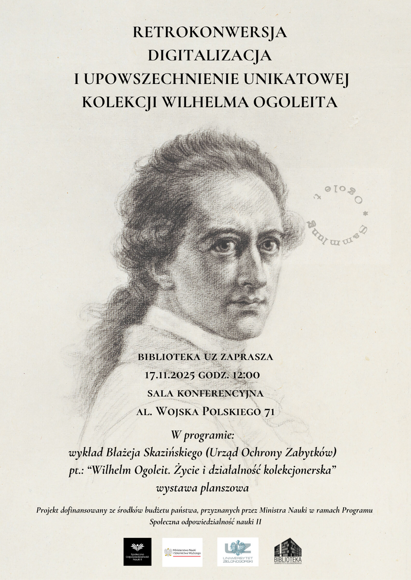 Wykład stanowi podsumowanie projektu: „Retrokonwersja, digitalizacja i upowszechnienie unikatowej kolekcji Wilhelma Ogoleita”