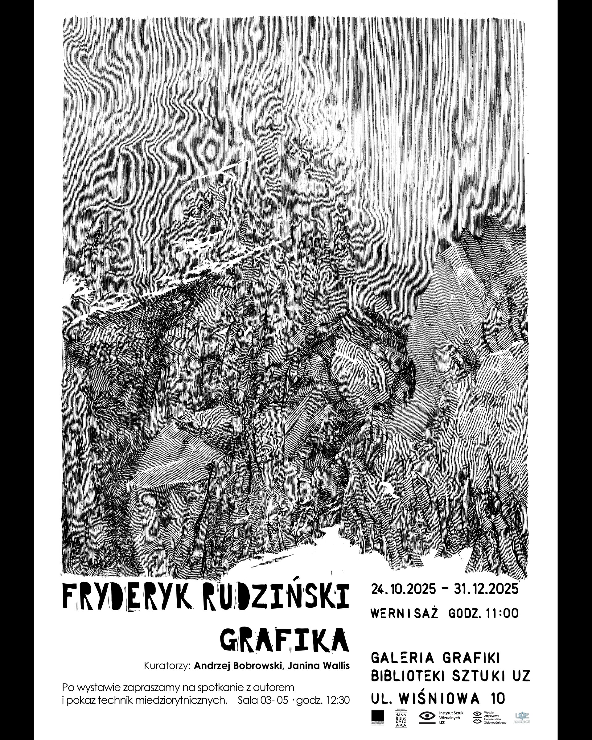 Fryderyk Rudziński studiował grafikę na Wydziale Artystycznym w Lublinie gdzie w 2011r. obronił dyplom. W latach 2017-2020 prowadził pracownie miedziorytu w Domu Słów-Izbie Druku, instytucji zajmującej się starymi metodami druku, introligatorstwem oraz papiernictwem. Od 2020 pracuje na macierzystej uczelni w katedrze druku warsztatowego jako laborant. Zajmuję się grafiką warsztatową, w szczególności techniką miedziorytu, ilustracją i rysunkiem.