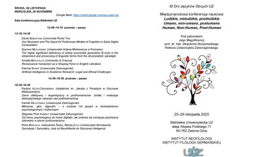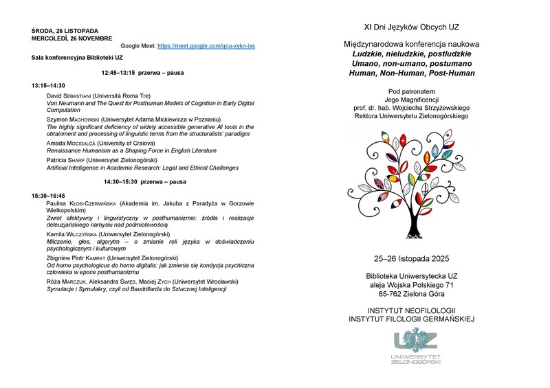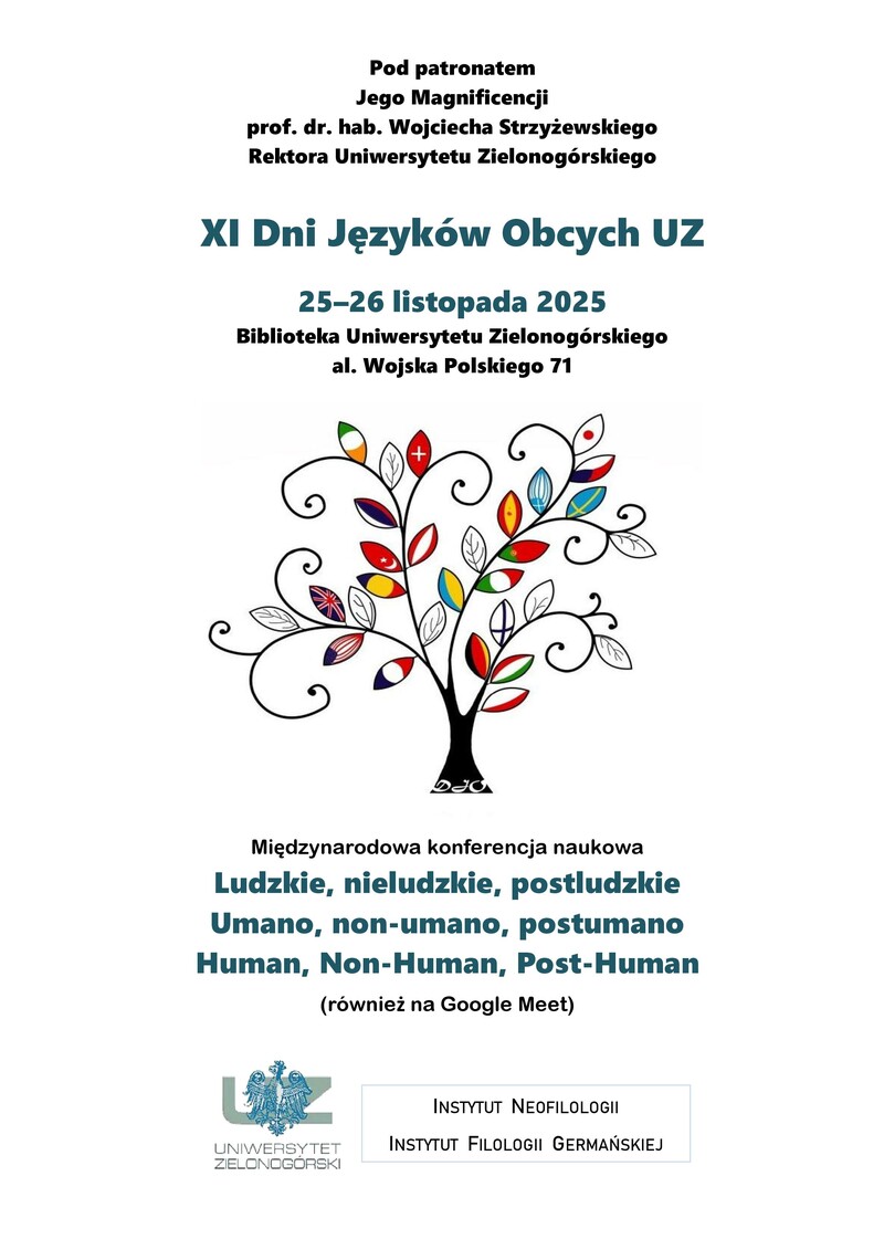 Zapraszamy na XI Dni Języków Obcych UZ. Międzynarodowa konferencja naukowa odbędzie się w tym roku pod hasłem Ludzkie, nieludzkie, postludzkie. Umano, non-umano, postumano. Human, Non-Human, Post-Human". Szczegóły w załącznikach.