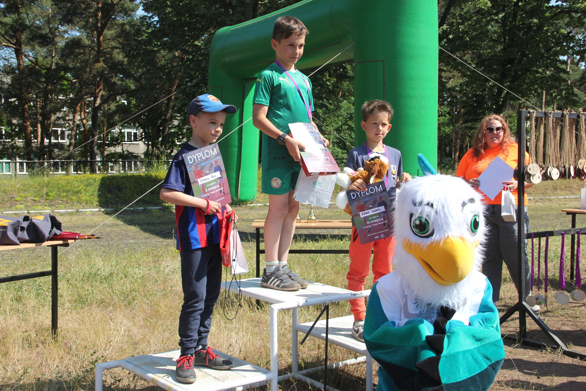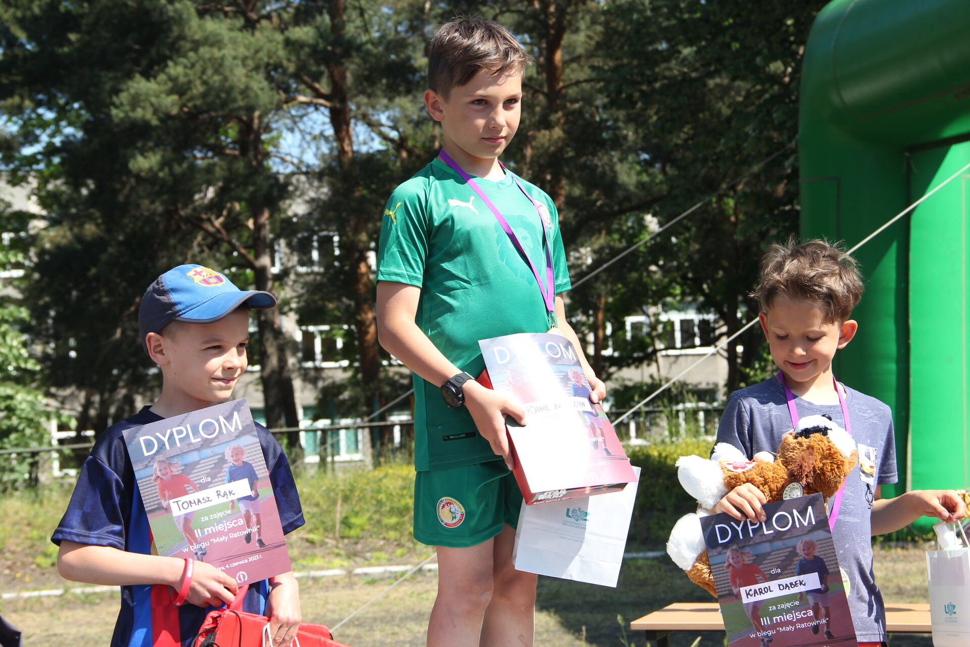 Zwycięzcy biegu dla dzieci - kategoria Rocznik 2014-2015: Tomasz Rąk, Kamil Baszczyn i Karol Dąbek, fot. J. Czarnecka