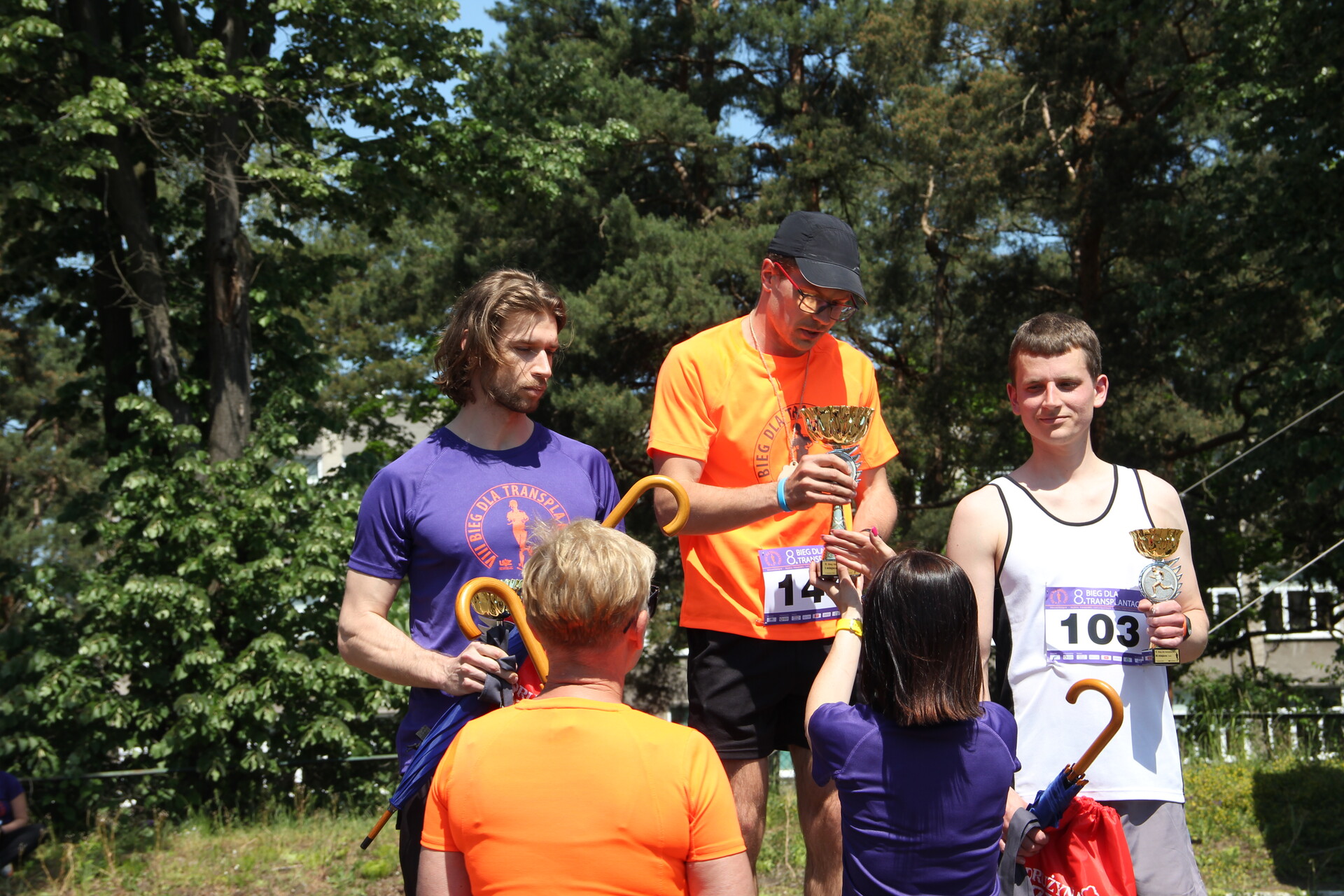 Zwycięzcy 8. Biegu dla transplantacji w kategorii mężczyzn: Tomasz Cendrowski, Patryk Sochocki i Radek Wicherek, fot. J. Czarnecka