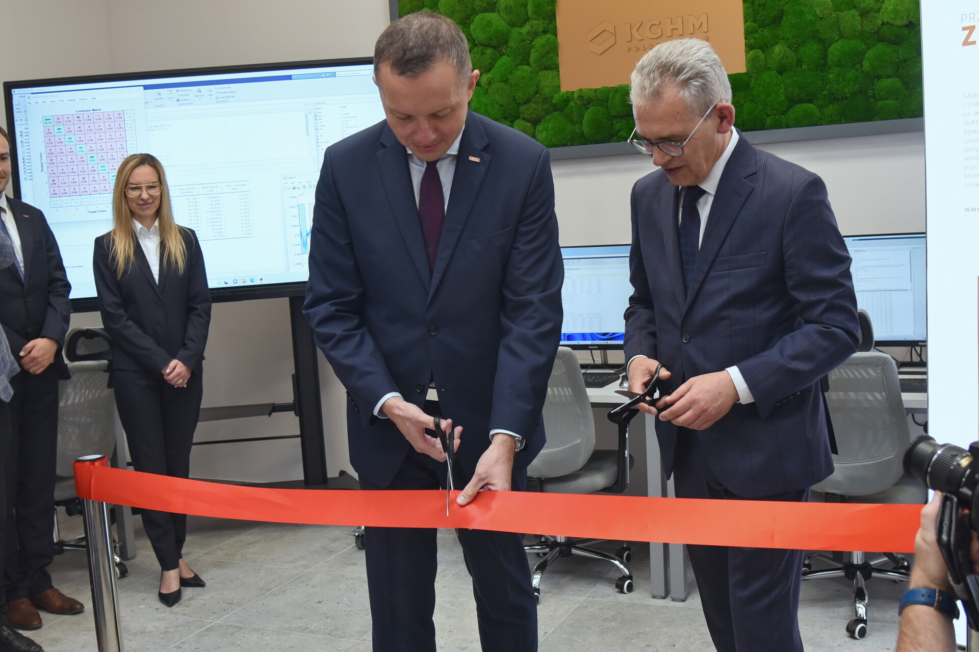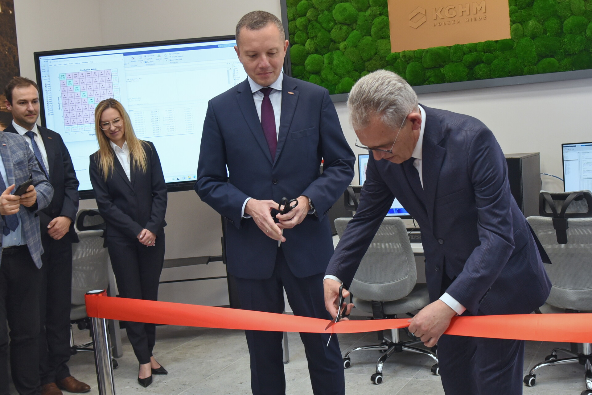 Tomasz Zdzikot - prezes zarządu KGHM Polska Miedź S.A. oraz Rektor UZ - prof. dr hab. Wojciech Strzyżewski przecinają wstęgę na otwarcie laboratorium, fot. K. Adamczewski