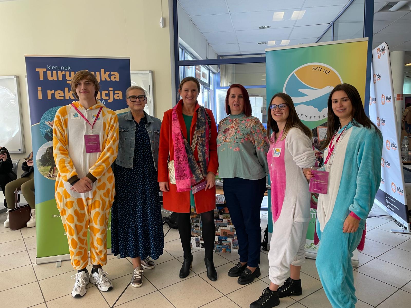 Dziekan WNSP dr hab. Beata Machnicka, dr Agnieszka Gandecka z-ca Dyrektora ISTiŻ, dr Iwona Miedzińska, studenci Koła Naukowego Turystyki
